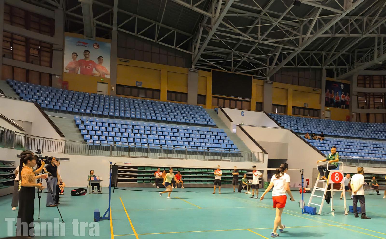 Ở góc sân 8, "2 bông hồng thép" môn cầu lông Thanh tra tỉnh Hưng Yên và Thanh tra tỉnh Lạng Sơn đang cống hiến cho khán giả những pha cầu đẹp mắt. Ảnh: Trí Vũ
