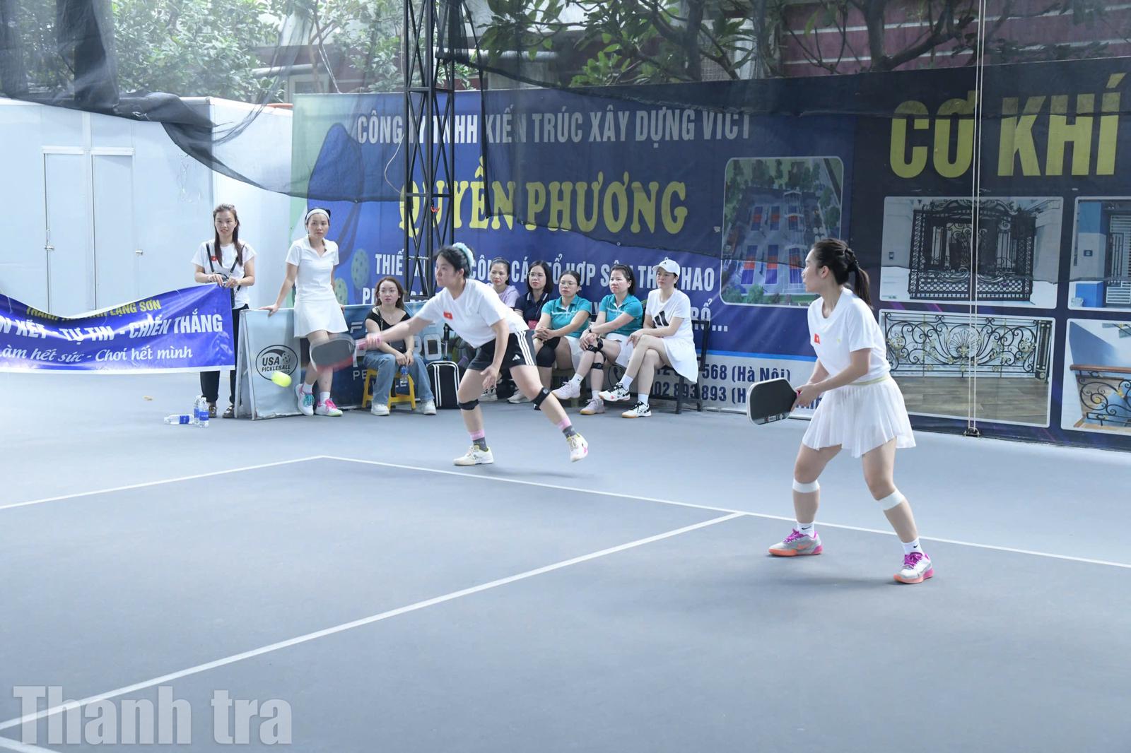 Đôi nữ Thanh tra tỉnh Lạng Sơn thi đấu hết mình trên sân Pickleball. Ảnh: HT