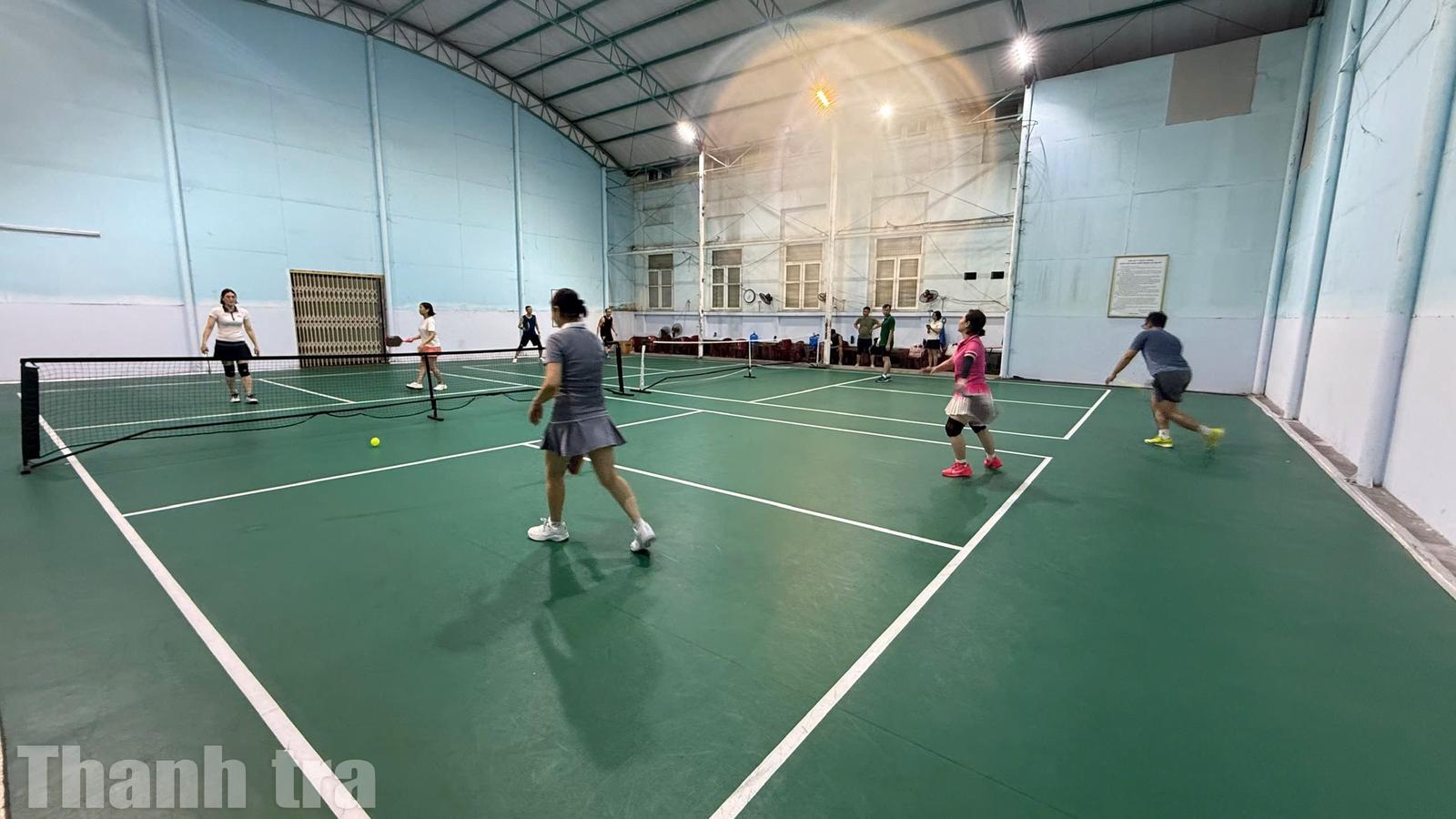 Sau giờ làm việc, các thành viên của đội Thanh tra tỉnh Lạng Sơn tranh thủ lên sân để cùng nhau tập luyện chuẩn bị cho hội thao 80 năm ngành Thanh tra. Ảnh: CB