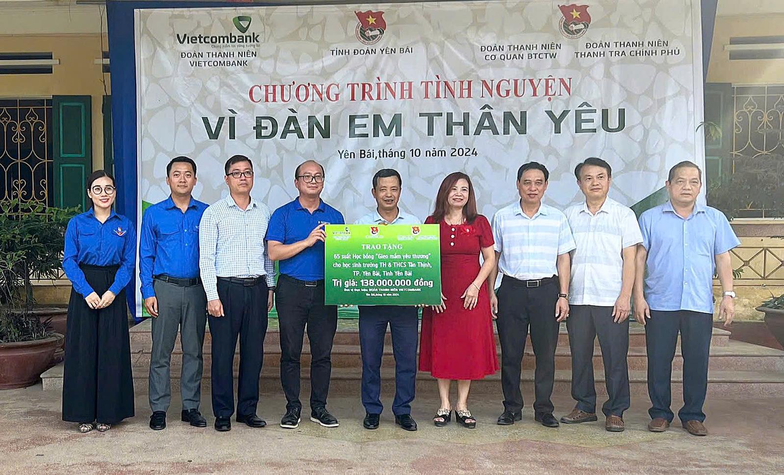 Nối tiếp các hoạt động thiện nghiện, Đoàn công tác đã chuyển hướng đến Trường Tiểu học và THCS Tân Thịnh, tỉnh Yên Bái, với sự đồng hành của Tỉnh đoàn Yên Bái, Vietcombank Yên Bái, và Sở Giáo dục và Đào tạo Yên Bái. Trong chương trình này, các đơn vị đã trao tặng tổng trị giá học bổng “Gieo mầm yêu thương” lên tới 158 triệu đồng.