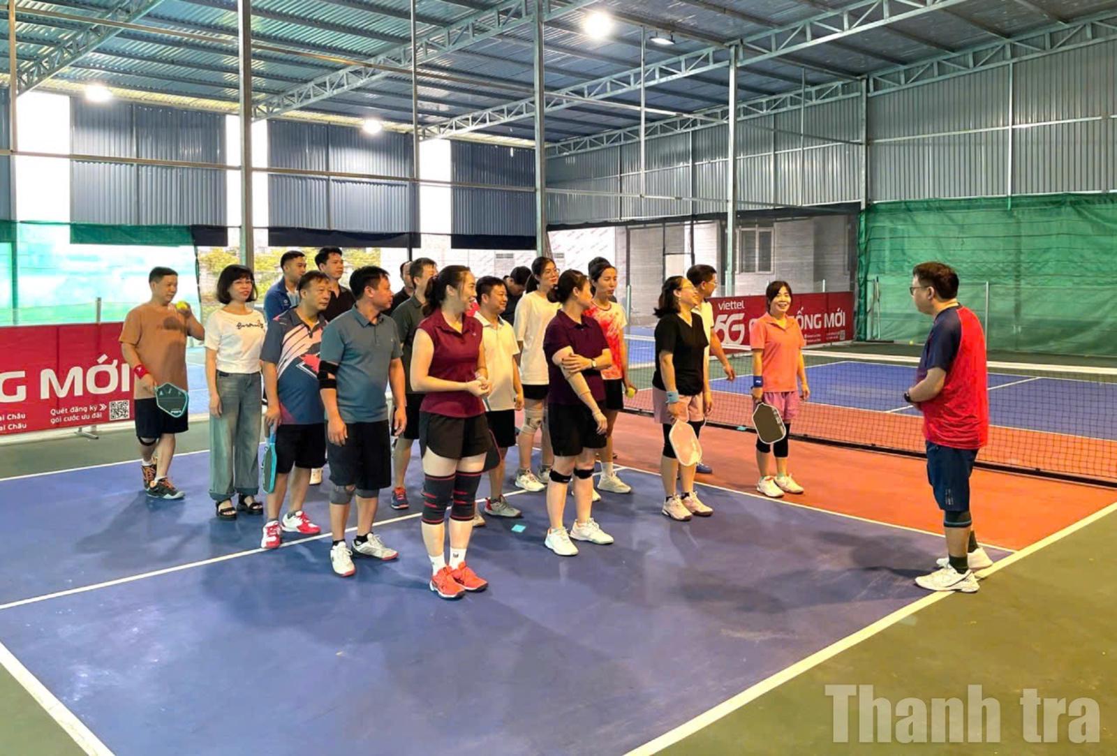 Lãnh đạo, cán bộ Thanh tra tỉnh Lai Châu hăng say tập luyện môn Pickleball, sẵn sàng cho Hội thao toàn ngành Thanh tra năm 2025. Ảnh: Bùi Bình