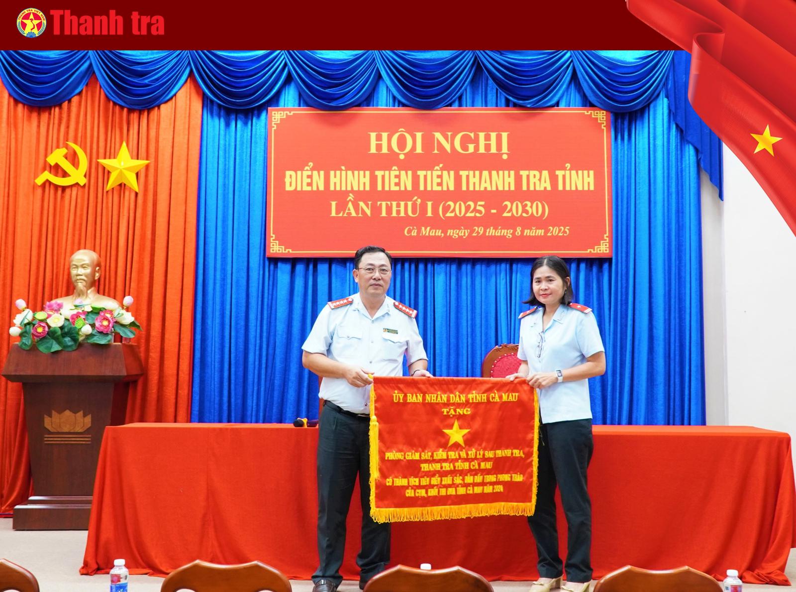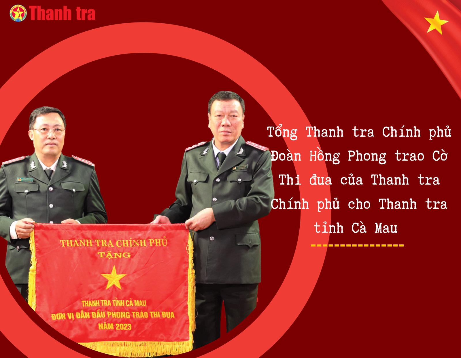 Chánh Thanh tra tỉnh Cà Mau Nguyễn Minh Phụng trao Cờ thi đua của UBND tỉnh Cà Mau cho tập thể có thành tích tiêu biểu xuất sắc, dẫn đầu trong phong trào của cụm, khối thi đua tỉnh Cà Mau năm 2024.
