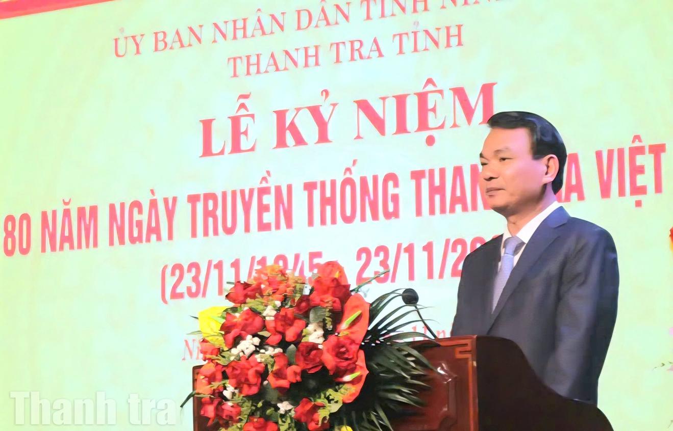 Bí thư Tỉnh ủy trân trọng biểu dương các thế hệ cán bộ, công chức, thanh tra viên đã “gìn giữ hình ảnh người thanh tra công minh, chính trực, khách quan, thận trọng, khiêm tốn”; đồng thời gửi lời cảm ơn tới những nỗ lực bền bỉ, thầm lặng nhưng đóng góp hiệu quả cho sự phát triển của tỉnh.