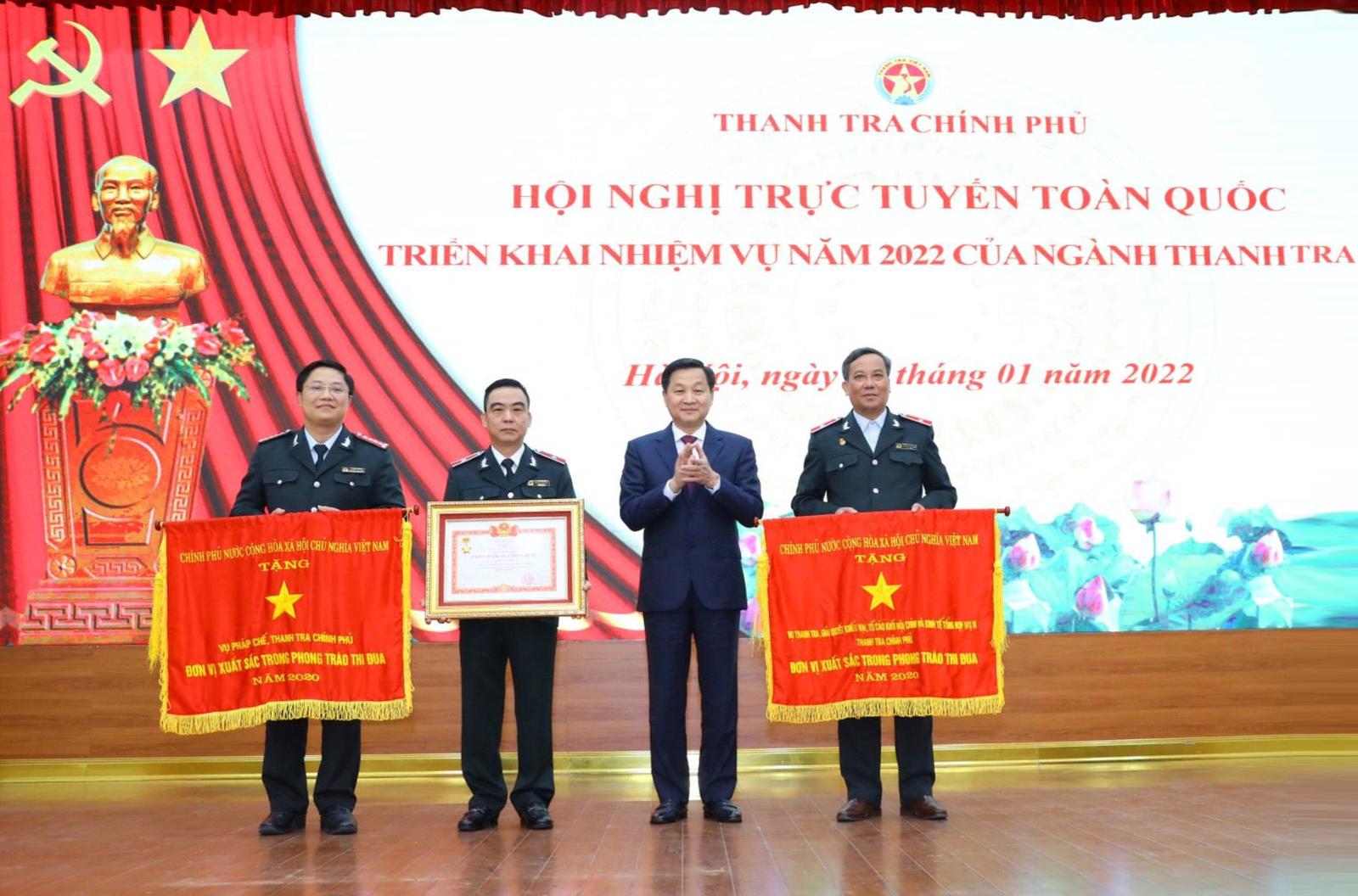 Tại hội nghị, Thanh tra Chính phủ đã công bố các quyết định khen thưởng và trao thưởng cho các đơn vị, cá nhân có thành tích xuất sắc năm 2021.