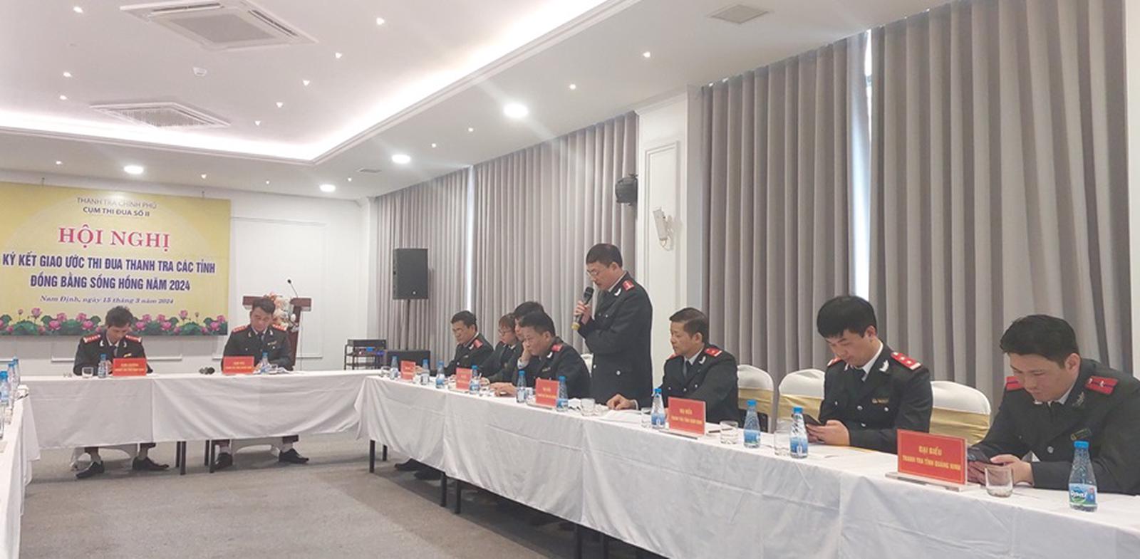 (Thanh tra) - Ngày 15/3/2024, tại Nam Định, Thanh tra 9 tỉnh đồng bằng sông Hồng (Cụm Thi đua số 2) tiến hành ký giao ước thi đua năm 2024, với chủ đề “Siết chặt kỷ cương, tăng cường hiệu quả công tác của ngành Thanh tra”.