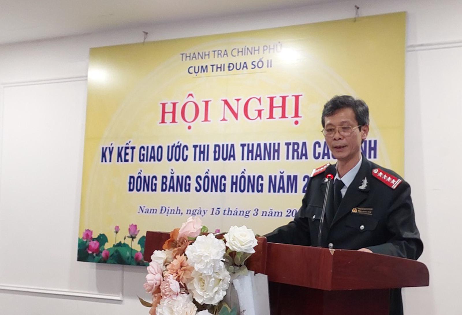 Ông Đinh Ngọc Văn - Chánh Thanh tra tỉnh Nam Định phát động phong trào thi đua năm 2024 của Cụm Thi đua số 2. Ảnh: TH