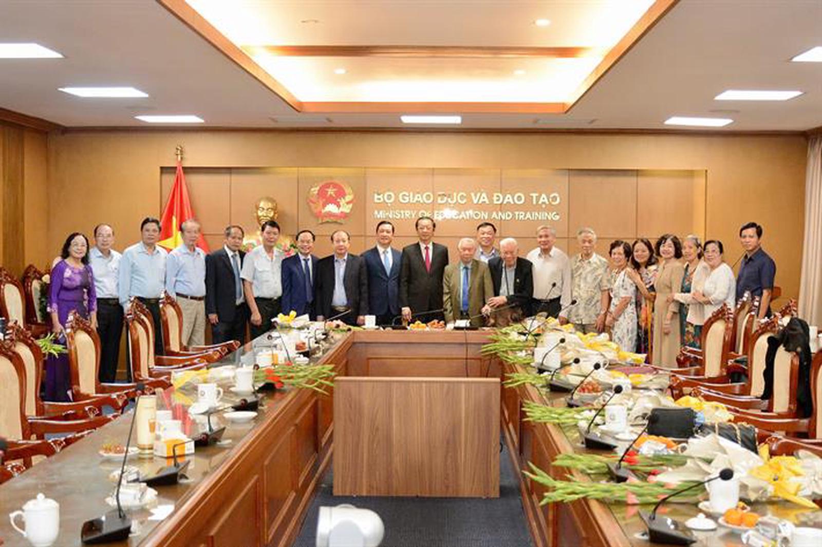 Thứ trưởng Bộ Giáo dục và Đào tạo Phạm Ngọc Thưởng chụp ảnh cùng lãnh đạo và nguyên lãnh đạo, cán bộ Thanh tra Bộ Giáo dục và Đào tạo qua các thời kỳ. Ảnh: TT