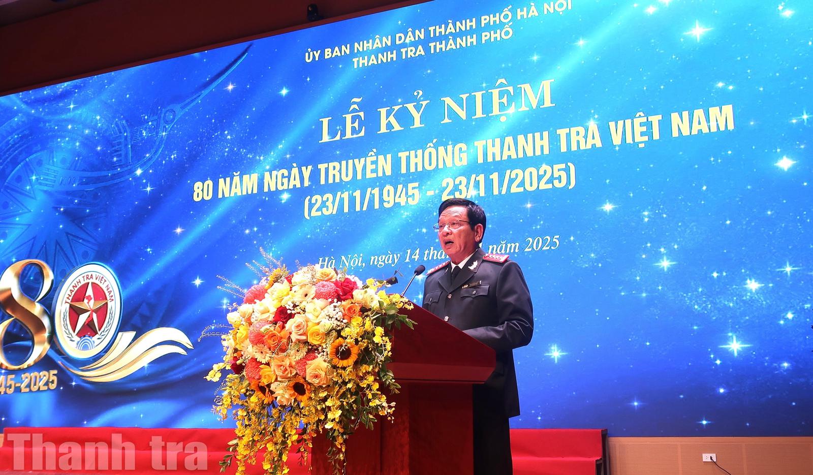 Ông cho biết, cách đây 24 năm ông được bổ nhiệm là Chánh Thanh tra Thành phố Hà Nội, qua 14 năm trải nghiệm thực tế công tác tại Thanh tra Thành phố và những năm tháng công tác tại Thanh tra Chính phủ ông hiểu sâu sắc vai trò của công tác thanh tra, về những khó khăn, vất vả của các thế hệ đạt được trong suốt 80 năm qua của ngành Thanh tra Việt Nam và của Thanh tra Thành phố Hà Nội.