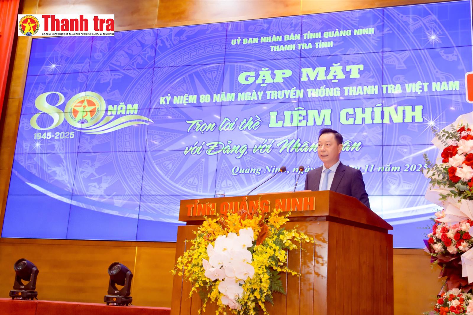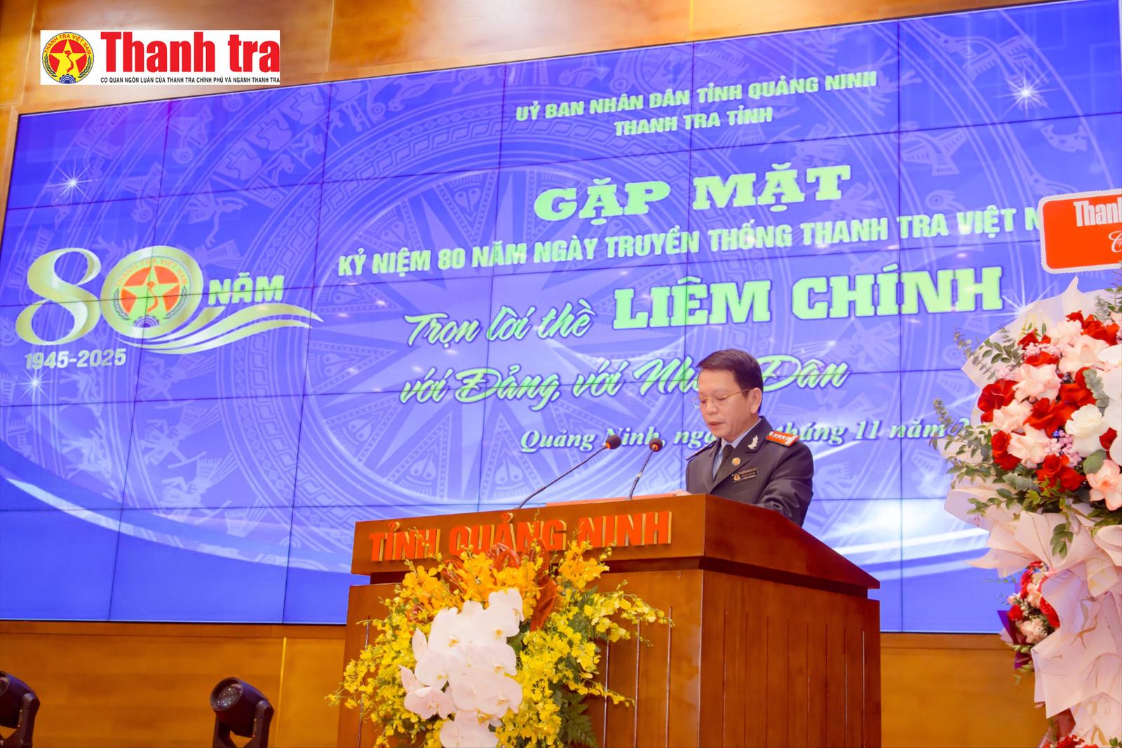 Phát biểu chúc mừng tại buổi gặp mặt kỷ niệm 80 năm Ngày truyền thống Thanh tra Việt Nam (23/11/1945 - 23/11/2025), ông Lê Văn Ánh, Phó Chủ tịch UBND tỉnh Quảng Ninh, khẳng định trải qua 80 năm xây dựng và trưởng thành, Thanh tra Việt Nam không ngừng lớn mạnh, giữ vai trò quan trọng trong hệ thống cơ quan quản lý nhà nước. Thanh tra tỉnh Quảng Ninh nói riêng và Thanh tra Việt Nam nói chung đã góp phần bảo vệ pháp chế xã hội chủ nghĩa, giữ vững kỷ cương, trật tự hành chính; phòng ngừa, phát hiện, xử lý hiệu quả sai phạm; củng cố niềm tin của Nhân dân đối với Đảng và Nhà nước.