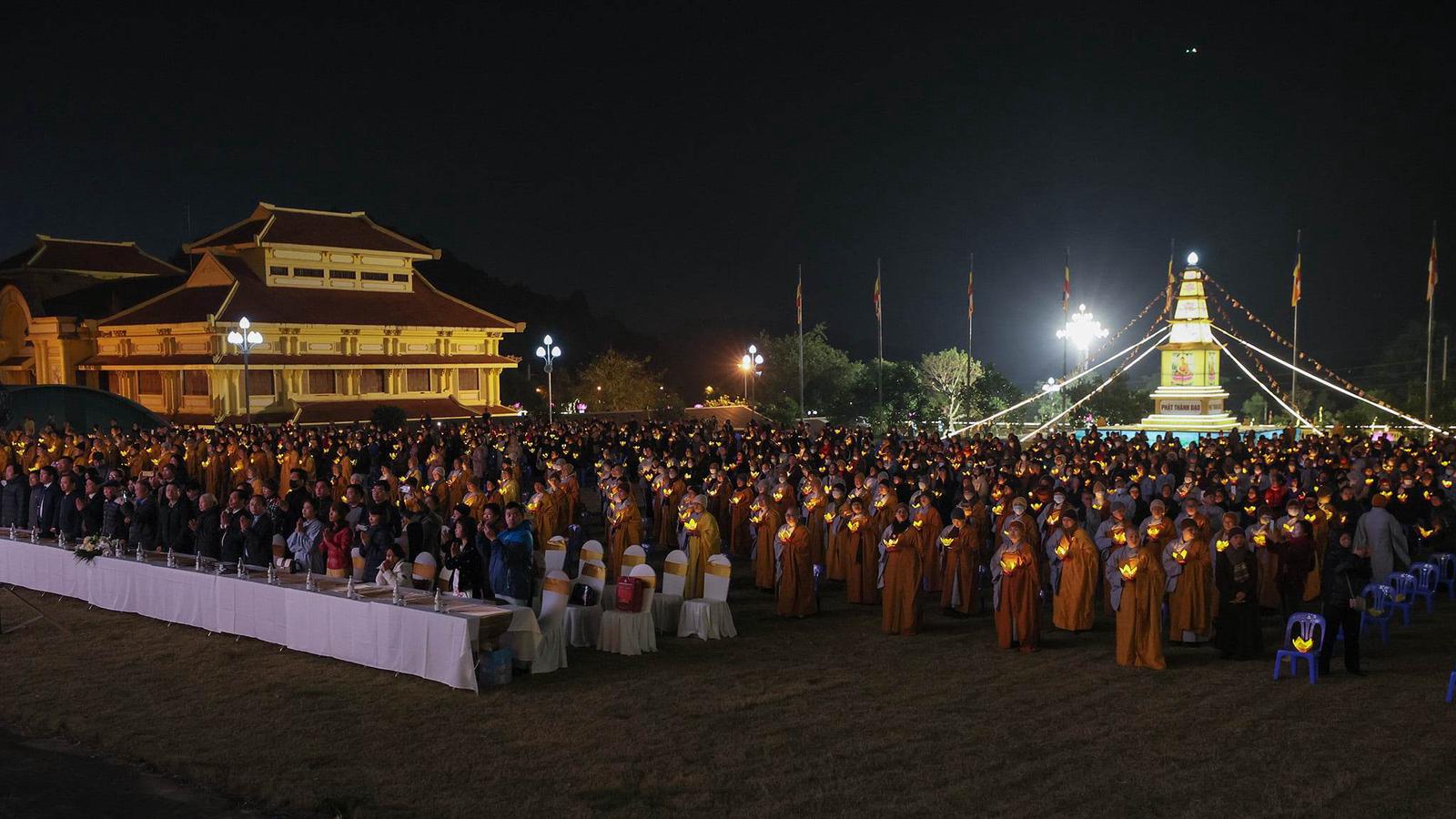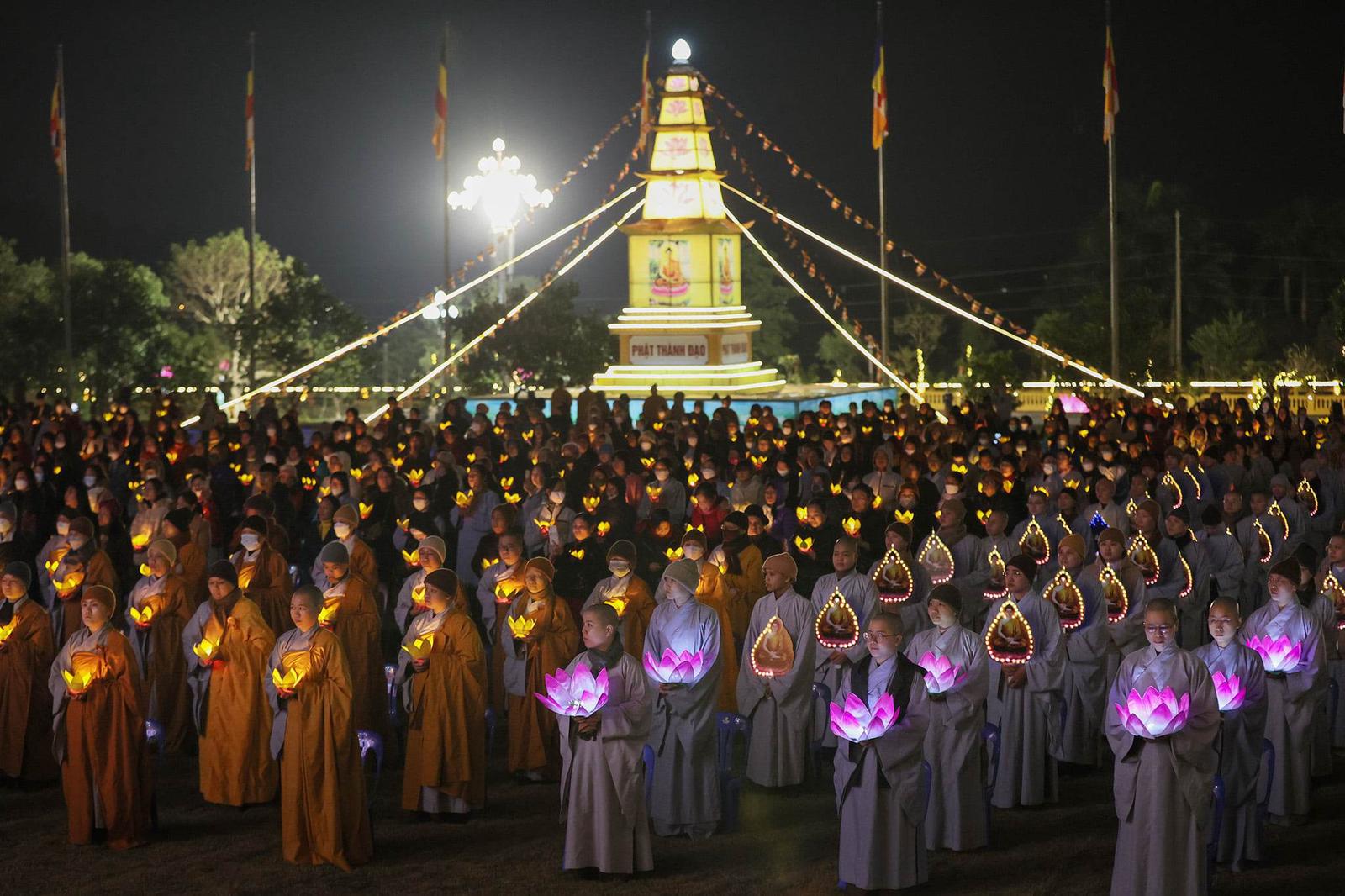 500 tăng ni sinh cầu nguyện quốc thái dân an Đại lễ Phật Thành đạo. Ảnh: TV