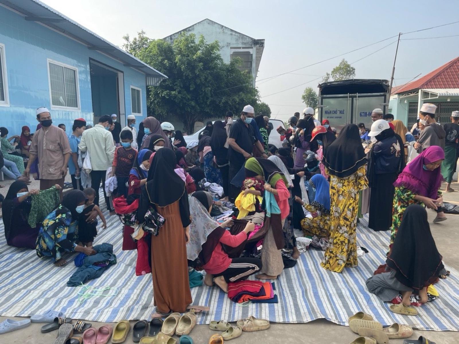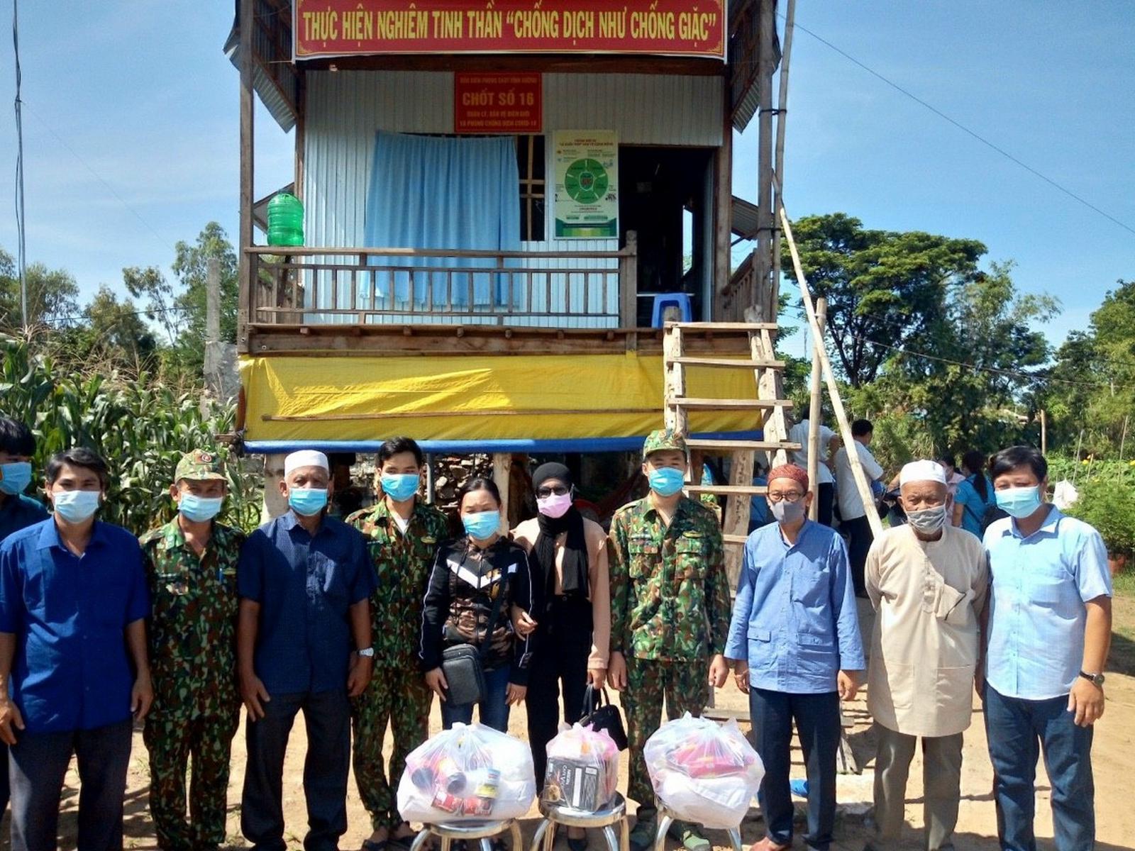 Trưởng Ban Cộng đồng Hồi giáo tỉnh An Giang, ông Haji Jaky (thứ ba từ phải sang) thăm và tặng quà phòng, chống dịch COVID-19 (ngày 19/6/2021) cho chốt Vĩnh Xương tại biên giới xã Vĩnh Xương, thị xã Tân Châu