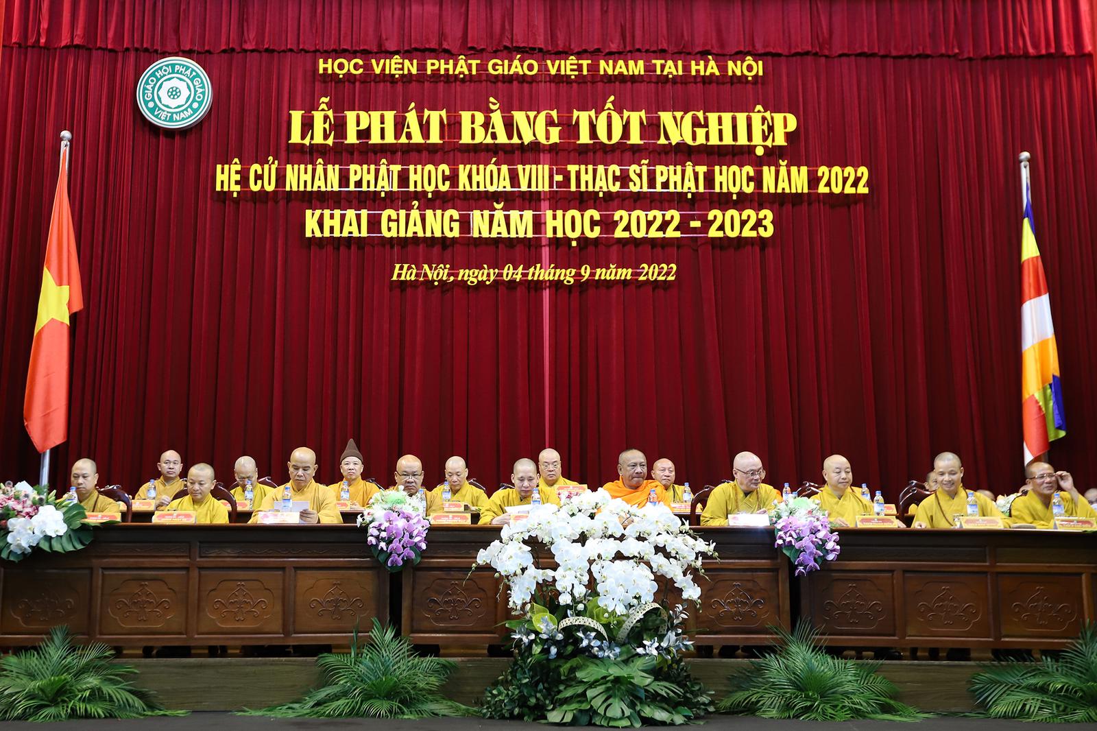 Phát biểu tại buổi lễ, Phó Chủ tịch Mặt trận Tổ quốc Việt Nam Ngô Sách Thực đã gửi lời chúc mừng tới các học viên được trao bằng tốt nghiệp hệ cử nhân Phật học khóa VIII, thạc sĩ Phật học khóa I và HVPGVN tại Hà Nội trong ngày khai giảng năm học 2022 - 2023.