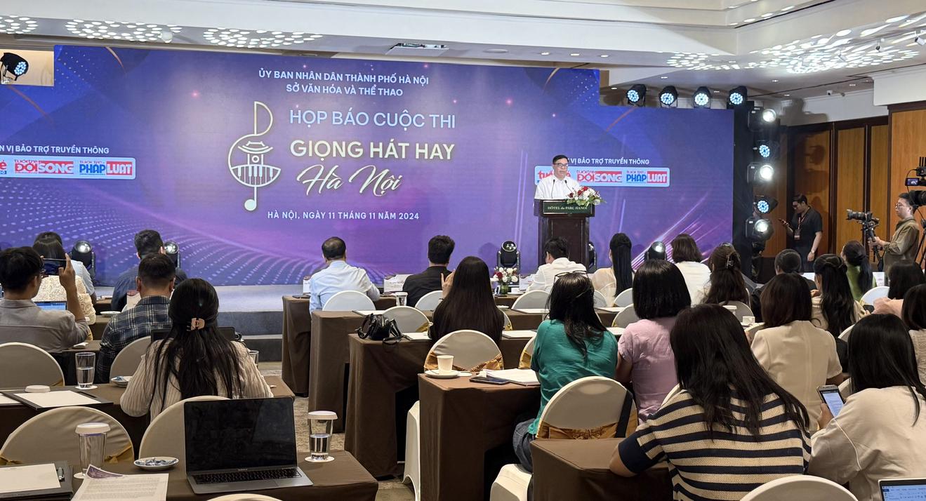 Toàn cảnh họp báo thông tin về cuộc thi "Giọng hát hay Hà Nội năm 2024". Ảnh: TH