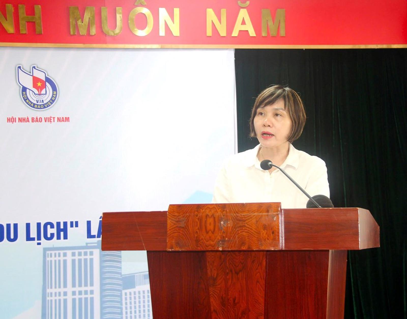 Bà Đỗ Thị Thu Hằng, Trưởng Ban Nghiệp vụ Hội Nhà báo Việt Nam báo cáo công tác chấm vòng sơ khảo. Ảnh: PV