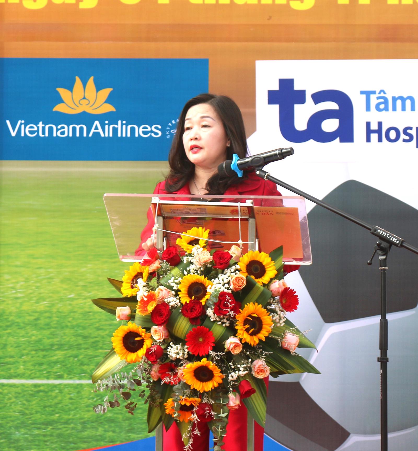 Tổng Biên tập Báo Đại biểu Nhân dân Phạm Thị Thanh Huyền - Trưởng Ban Tổ chức Giải Bóng đá các cơ quan Trung ương mở rộng tranh Cúp Báo Đại biểu Nhân dân. Ảnh: Hoàng Nam