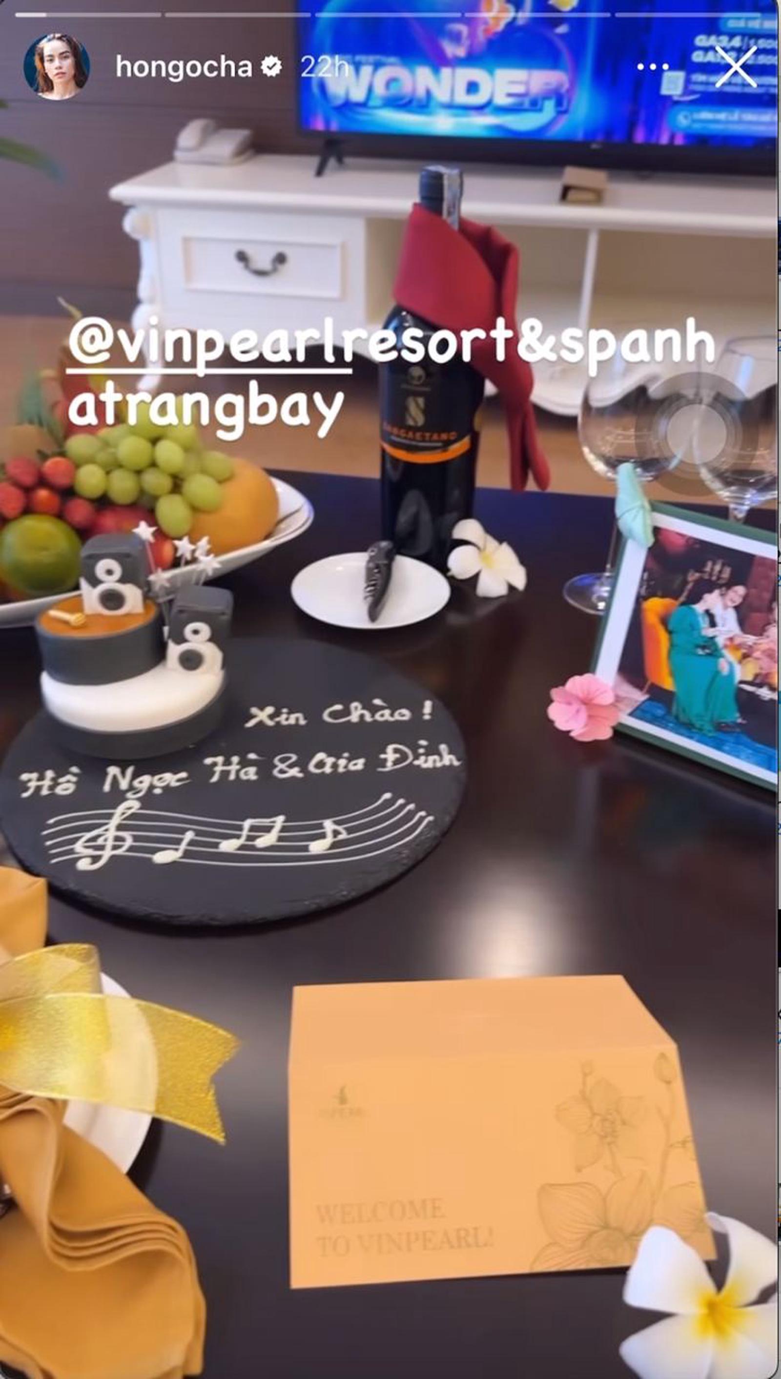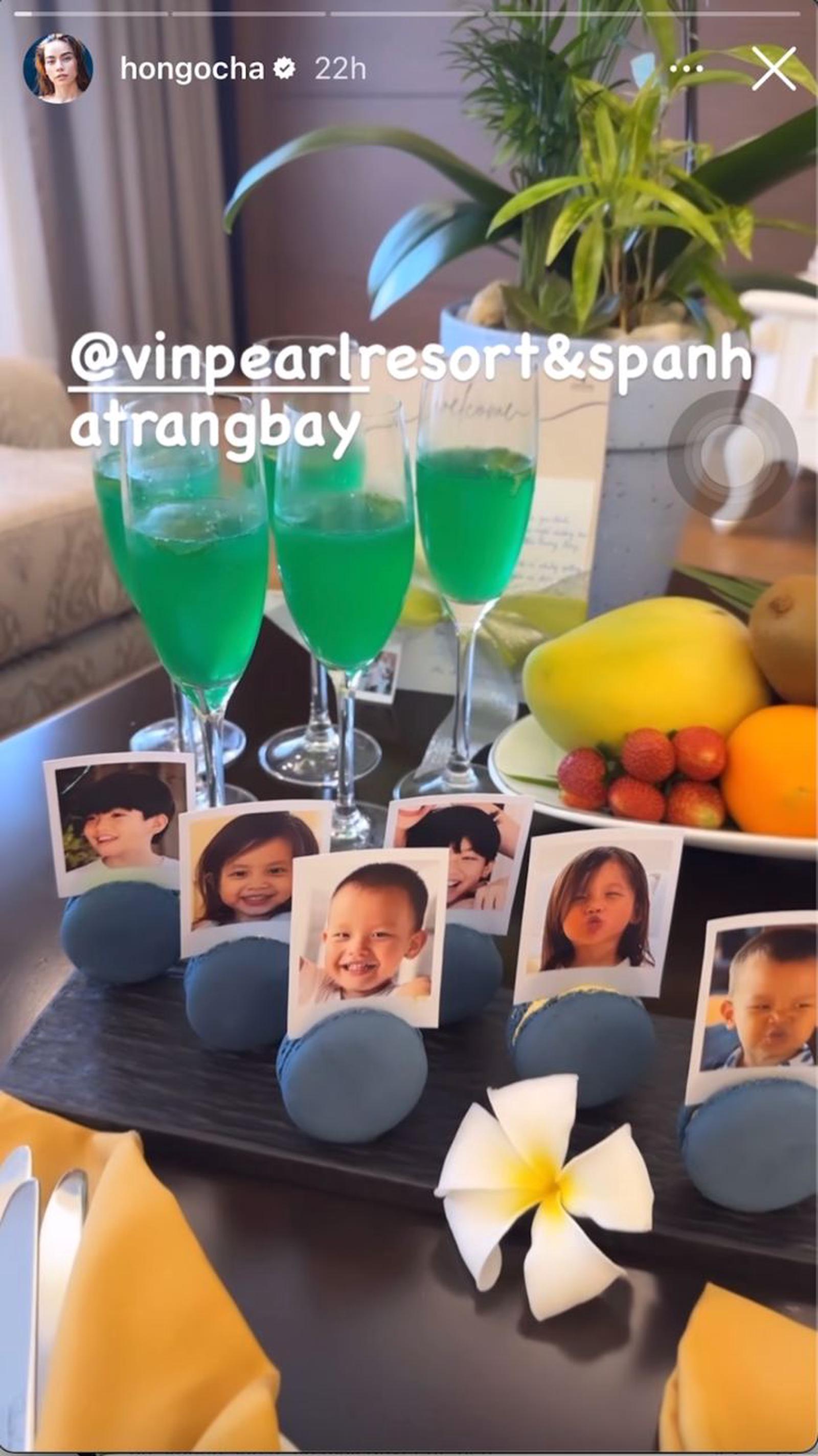 Hồ Ngọc Hà đăng story “khoe” bàn chào mừng vô cùng dễ thương với hình ảnh của cả 3 thành viên nhí khi vừa đặt chân tới Vinpearl Resort & Spa Nha Trang Bay