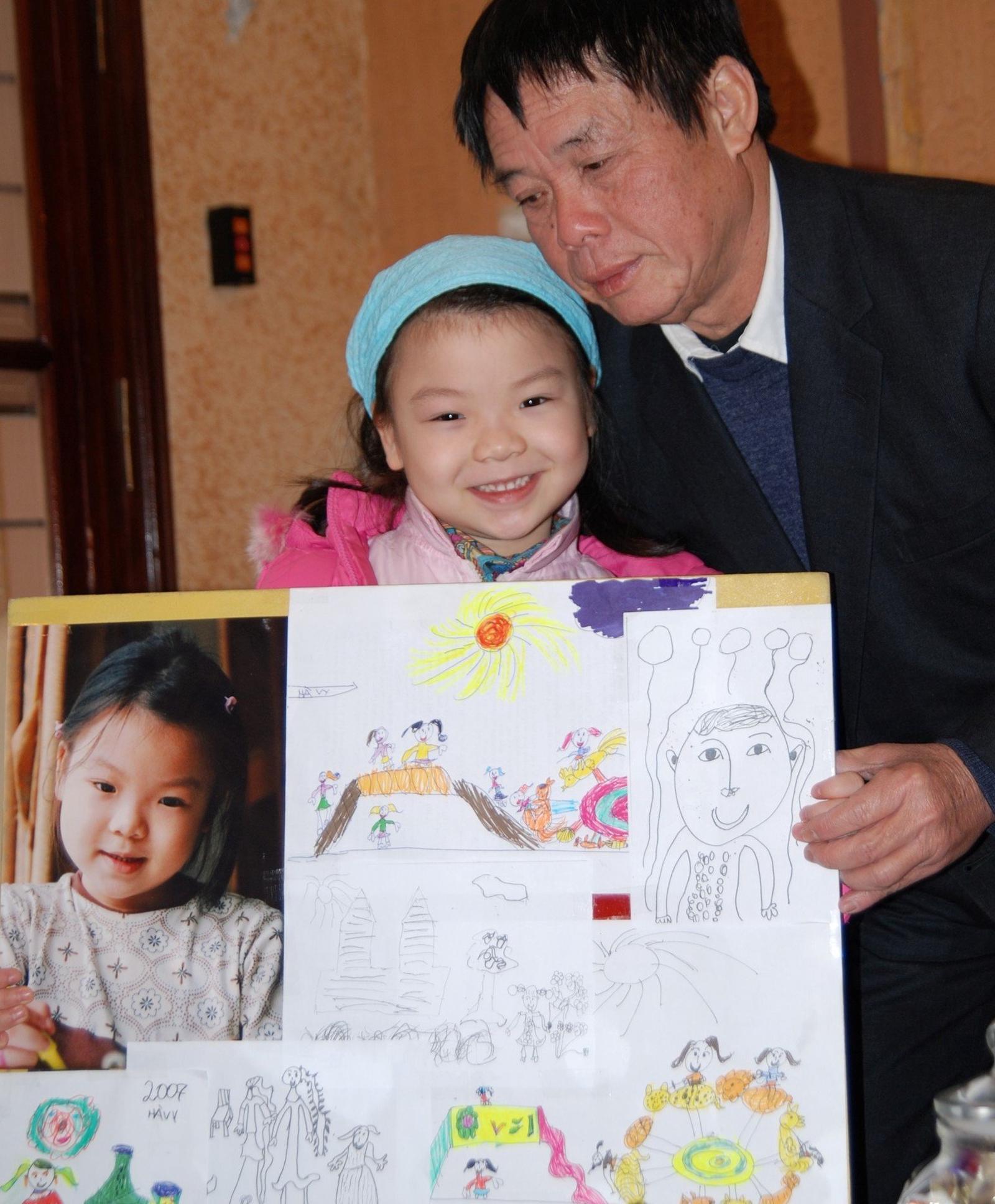 Nhà lý luận phê bình nhiếp ảnh Vũ Huyến chụp ảnh lưu niệm cùng "nhân vật" của mình. Ảnh: NVCC