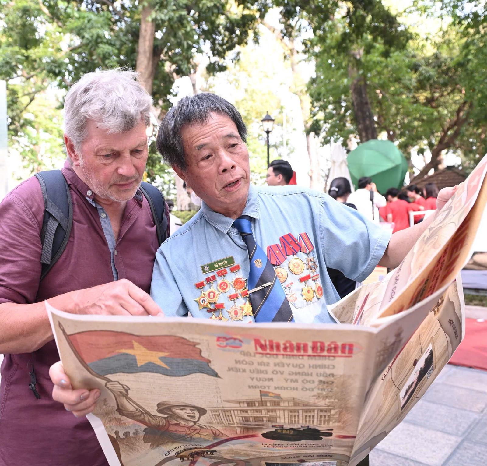 Nhà báo, nghệ sĩ nhiếp ảnh Vũ Huyến giới thiệu về quê hương, đất nước và con người Việt Nam tới du khách nước ngoài. Ảnh: NVCC