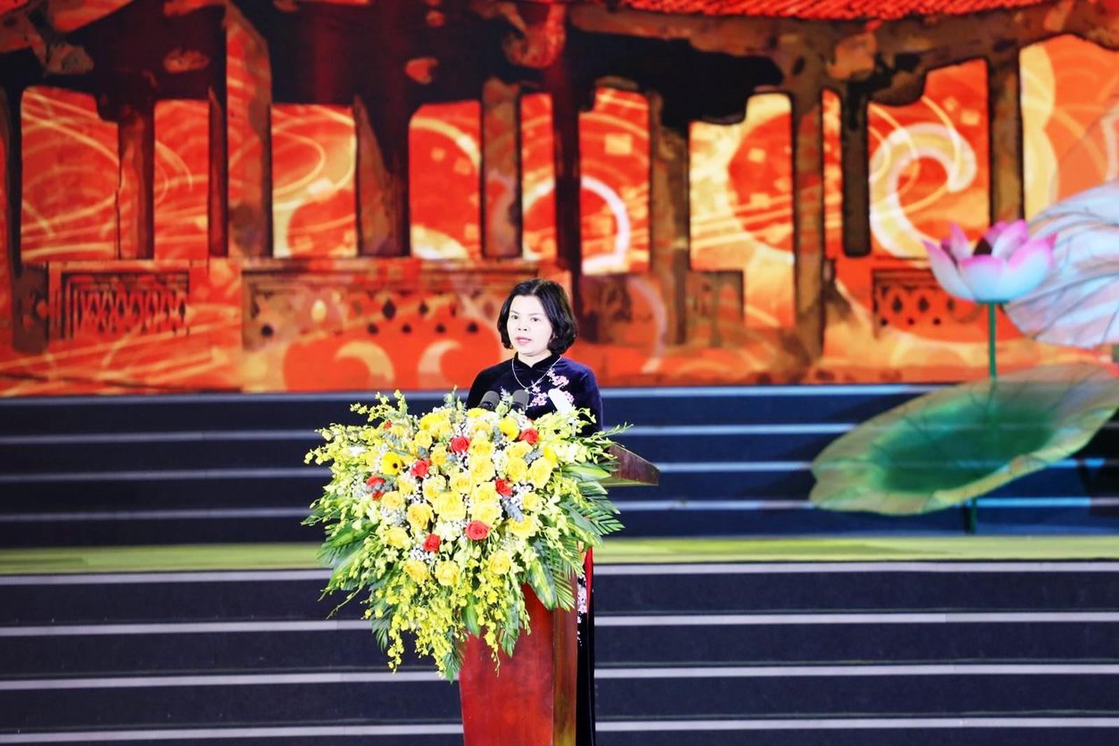 Chủ tịch UBND tỉnh Bắc Ninh Nguyễn Hương Giang: Festival “Về miền Quan họ - 2023” là nơi tinh hoa văn hóa các vùng miền hội tụ và toả sáng. Ảnh: PV