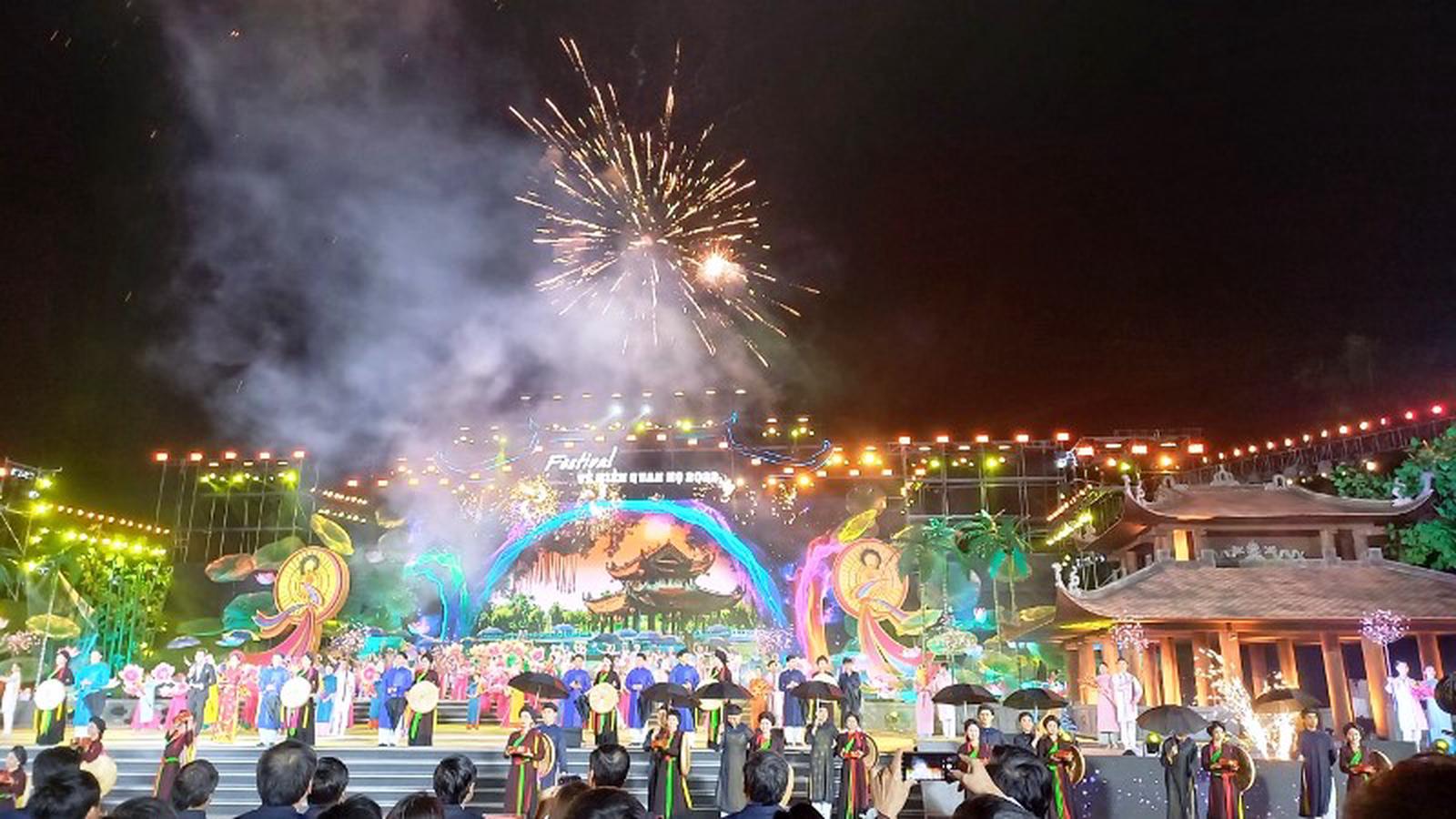 Tại lễ khai mạc, hàng nghìn du khách về dự đã được thưởng thức chương trình nghệ thuật đặc sắc với chủ đề “Miền di sản - Tinh hoa và bản sắc” mang đậm chất văn hóa Kinh Bắc.