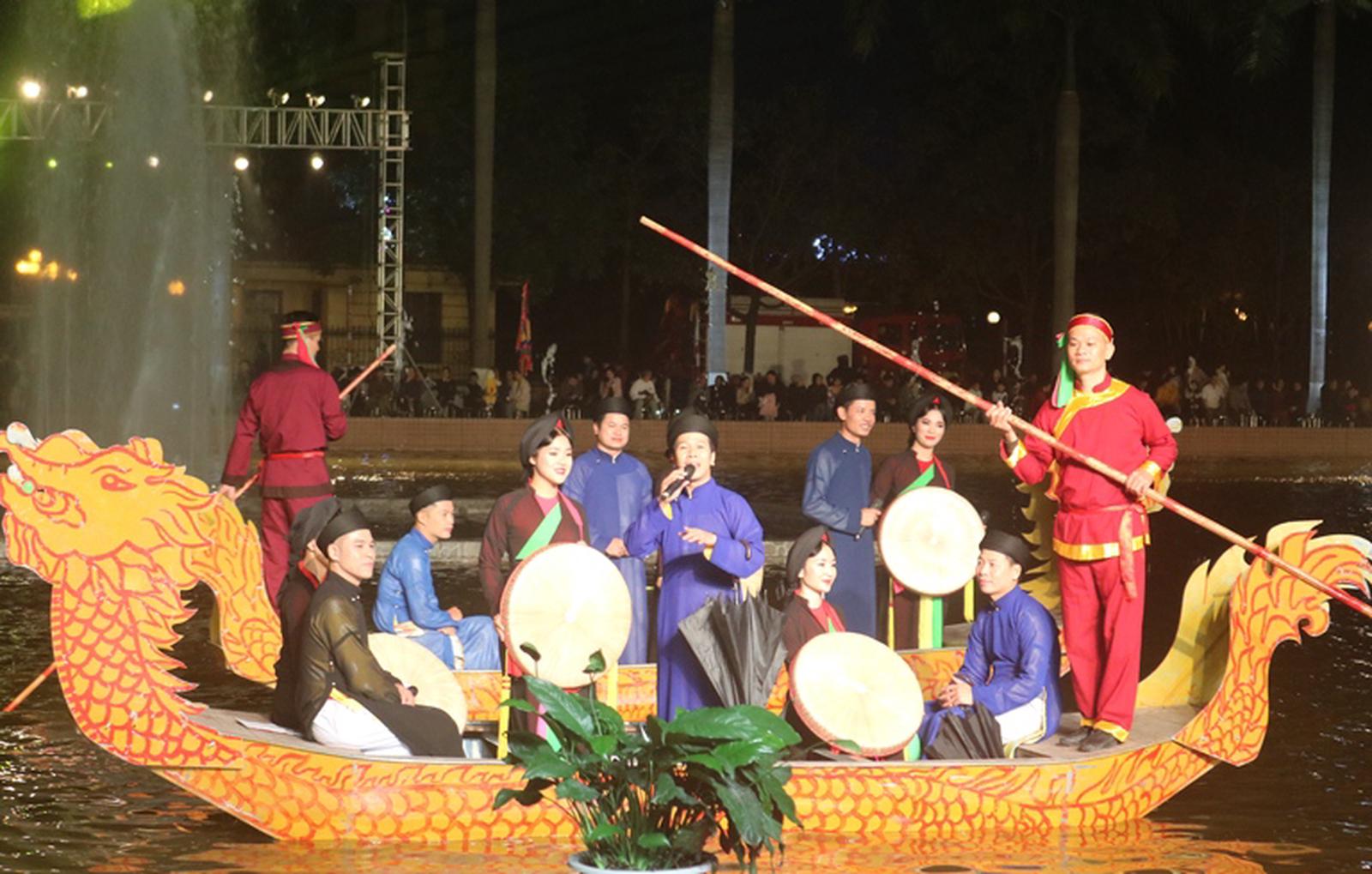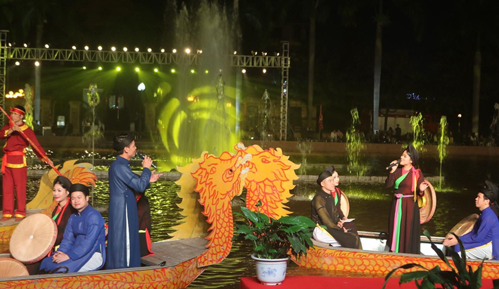 Tối 14/12 tại khu vực hồ Nguyên Phi Ỷ Lan đã diễn ra chương trình biểu diễn Dân ca Quan họ trên thuyền. Ảnh: TTH