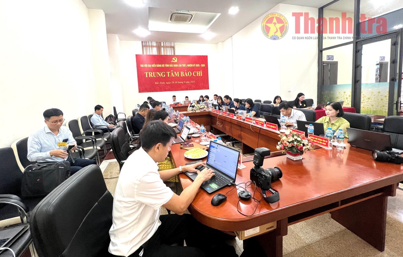 Nhà báo tác nghiệp tại Đại hội đại biểu Đảng bộ tỉnh Bắc Ninh lần thứ I, nhiệm kỳ 2025 - 2030. Ảnh: Hoàng Long