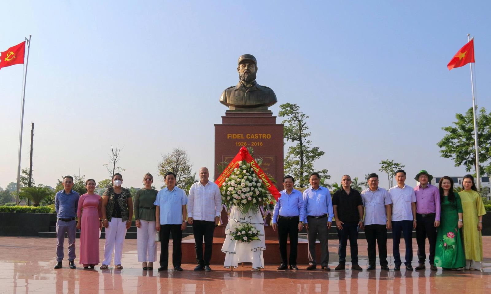 Đoàn đại biểu cấp cao Ủy ban Bảo vệ Cách mạng Cuba và Ủy ban Mặt trật Tổ quốc Việt nam dâng hoa tại Tượng đài Chủ tịch Fidel Castri trong Công viên Fidel. Ảnh: Tư liệu