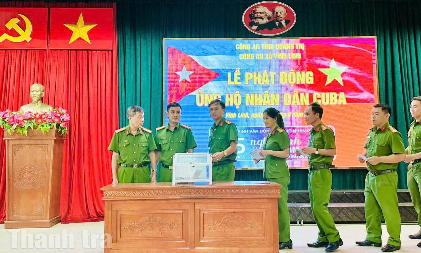 Các cán bộ, chiến sĩ Công an tỉnh Quảng Trị tại Lễ phát động ủng hộ Nhân dân Cuba. Ảnh: Khánh Anh