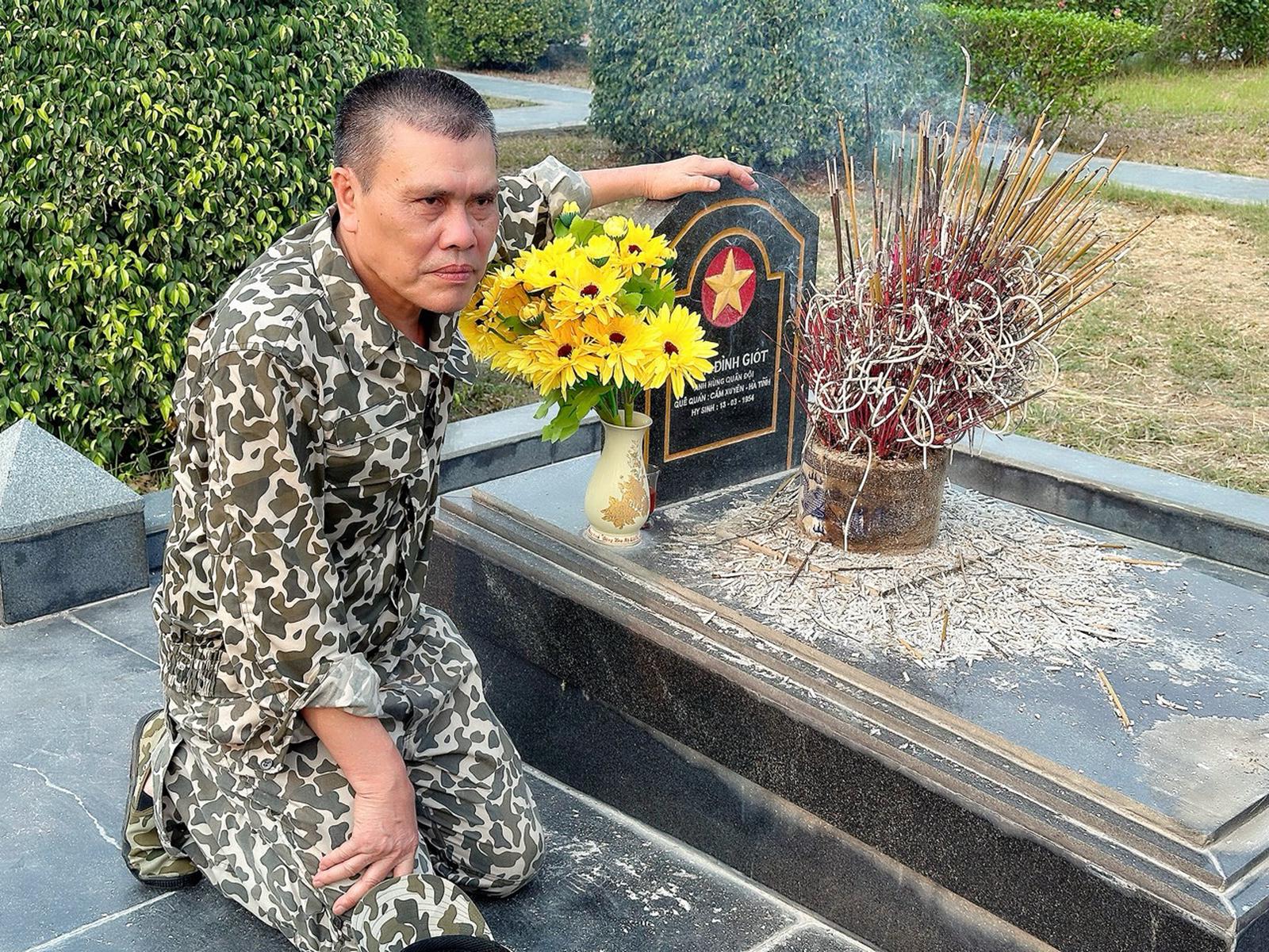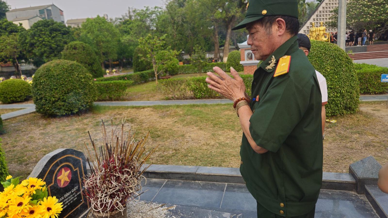 Những người lính cựu chiến binh kính cẩn, nghiêng mình trước các nấm mồ liệt sỹ. Ảnh: TV