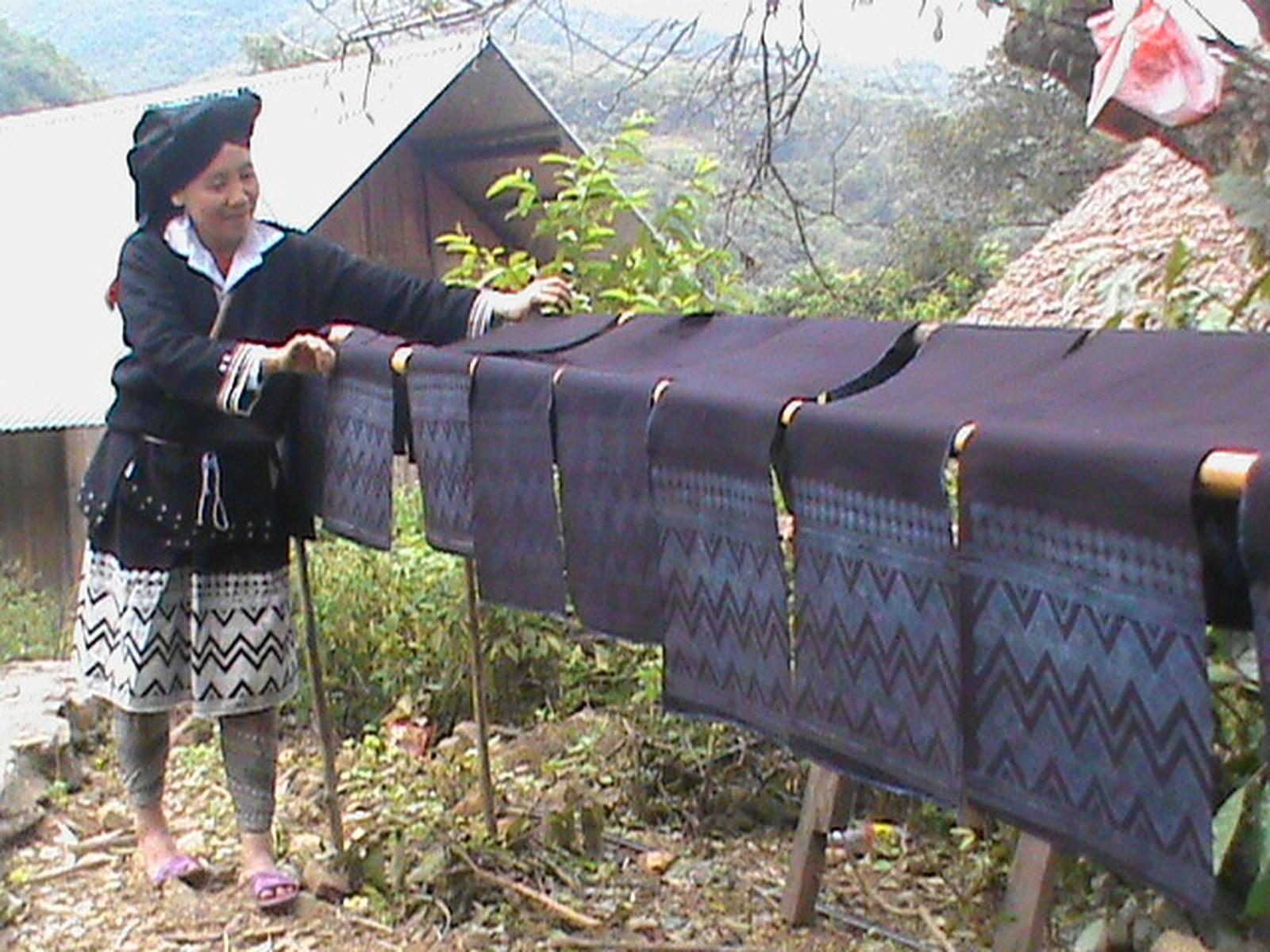 Đến bản Sưng, du khách được chiêm ngưỡng nghệ thuật thêu, dệt của người Dao Tiền. Nghề này được bảo tồn, phát triển qua nhiều thế hệ. Ảnh: TH