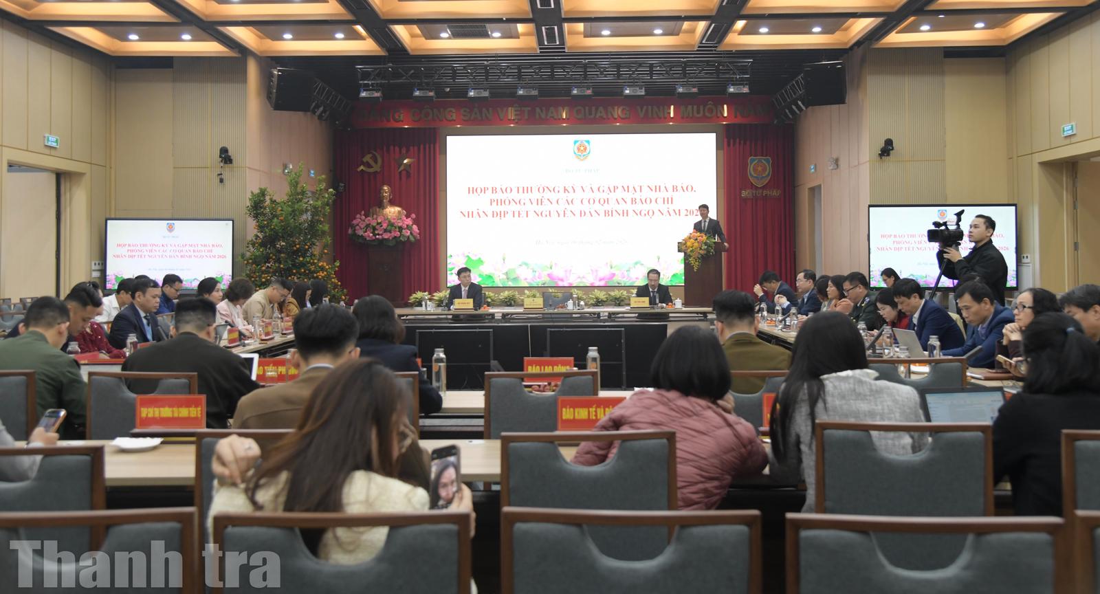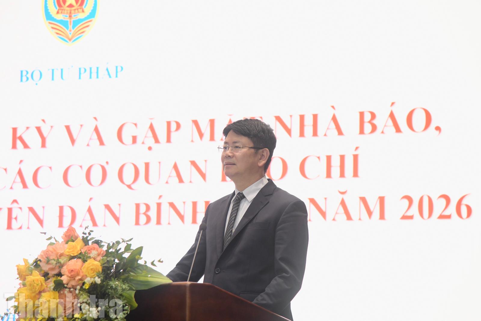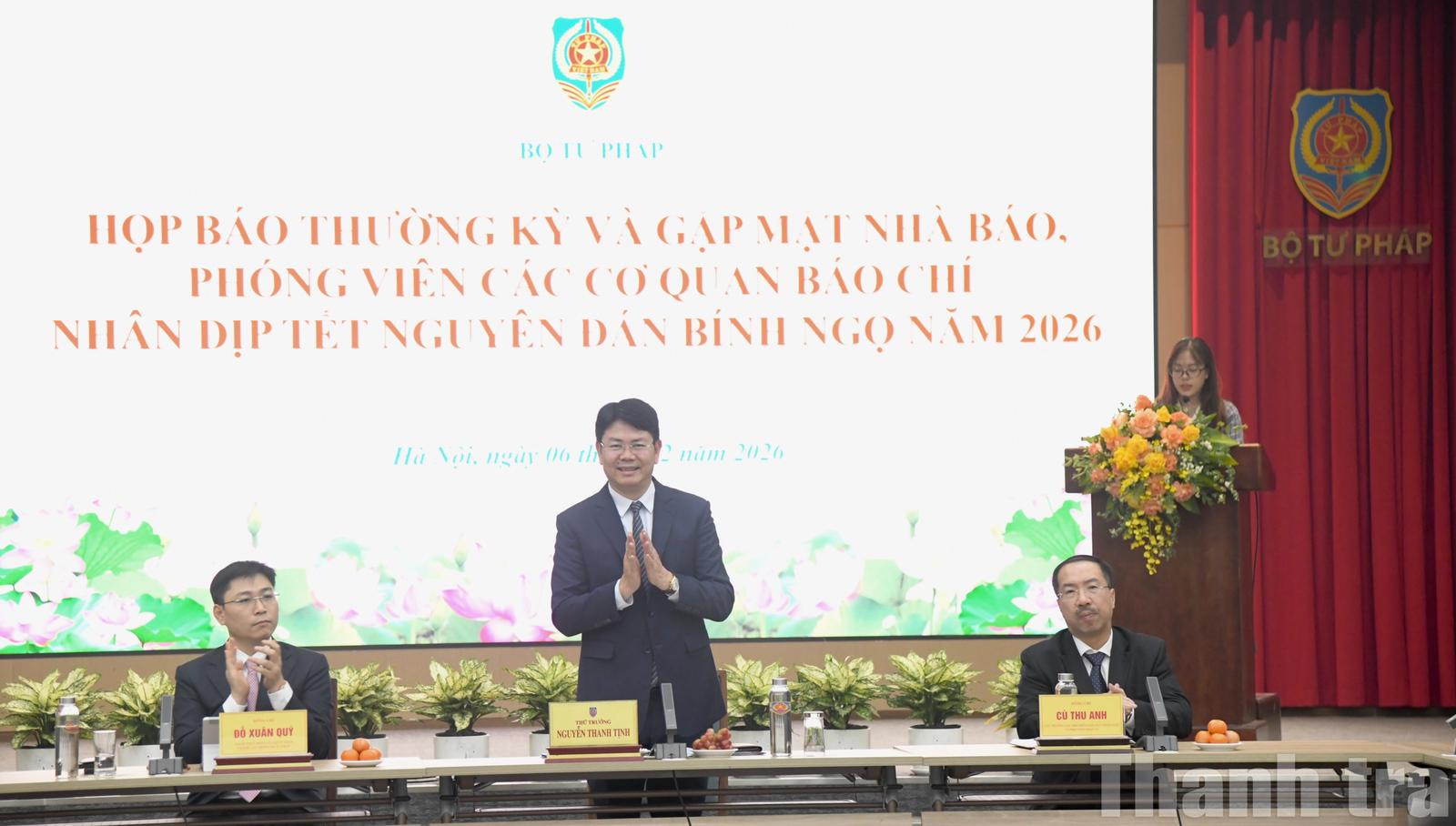 Sáng 6/2, Bộ Tư pháp tổ chức Họp báo thường kỳ và gặp mặt nhà báo, phóng viên các cơ quan báo chí nhân dịp Tết Nguyên đán Bính Ngọ năm 2026. Thứ trưởng Nguyễn Thanh Tịnh chủ trì buổi họp.