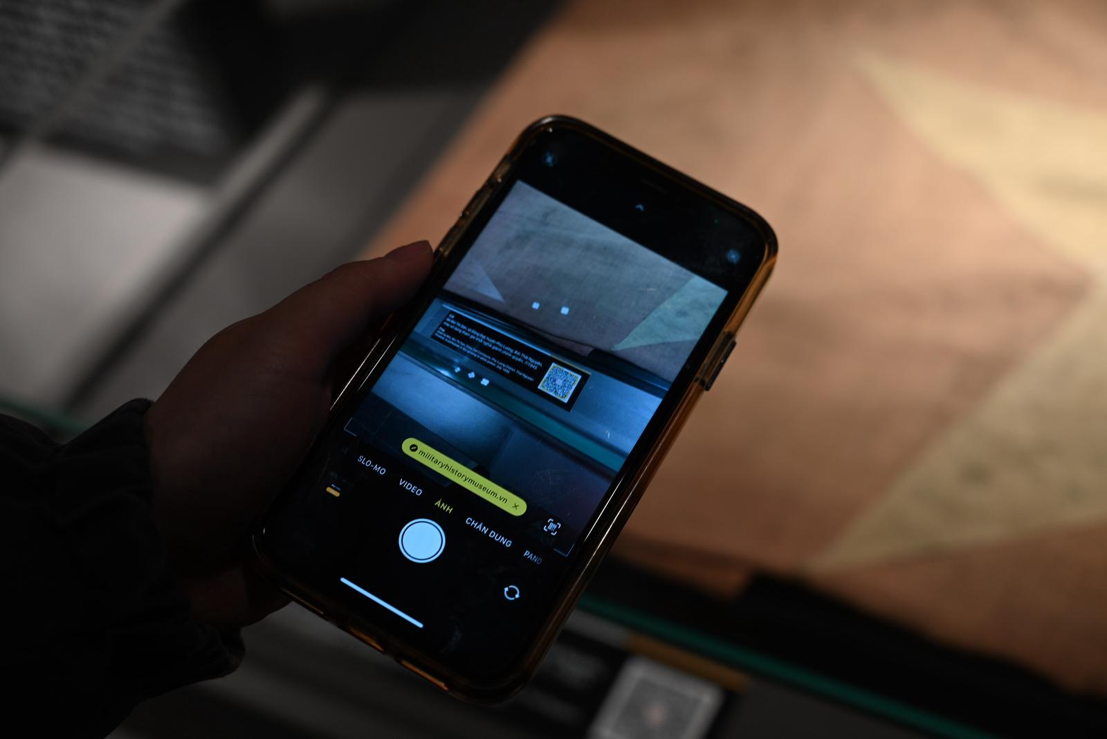 Du khách có thể sử dụng điện thoại thông minh để quét mã QR tra cứu thông tin hiện vật