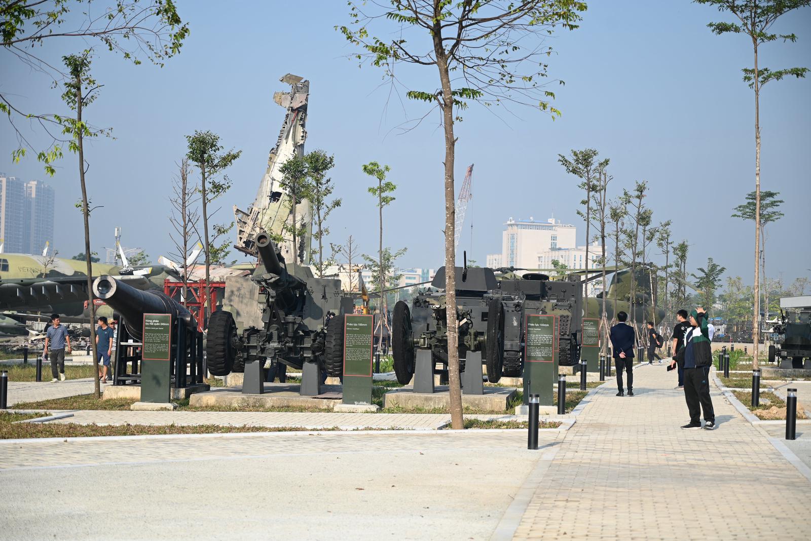 Bên ngoài khu vực bảo tàng trưng bày những loại vũ khí, trang bị, phương tiện đã xuất hiện trong hai cuộc kháng chiến chống Pháp và Mỹ bao gồm các loại pháo, xe chiến đấu bộ binh, xe tăng