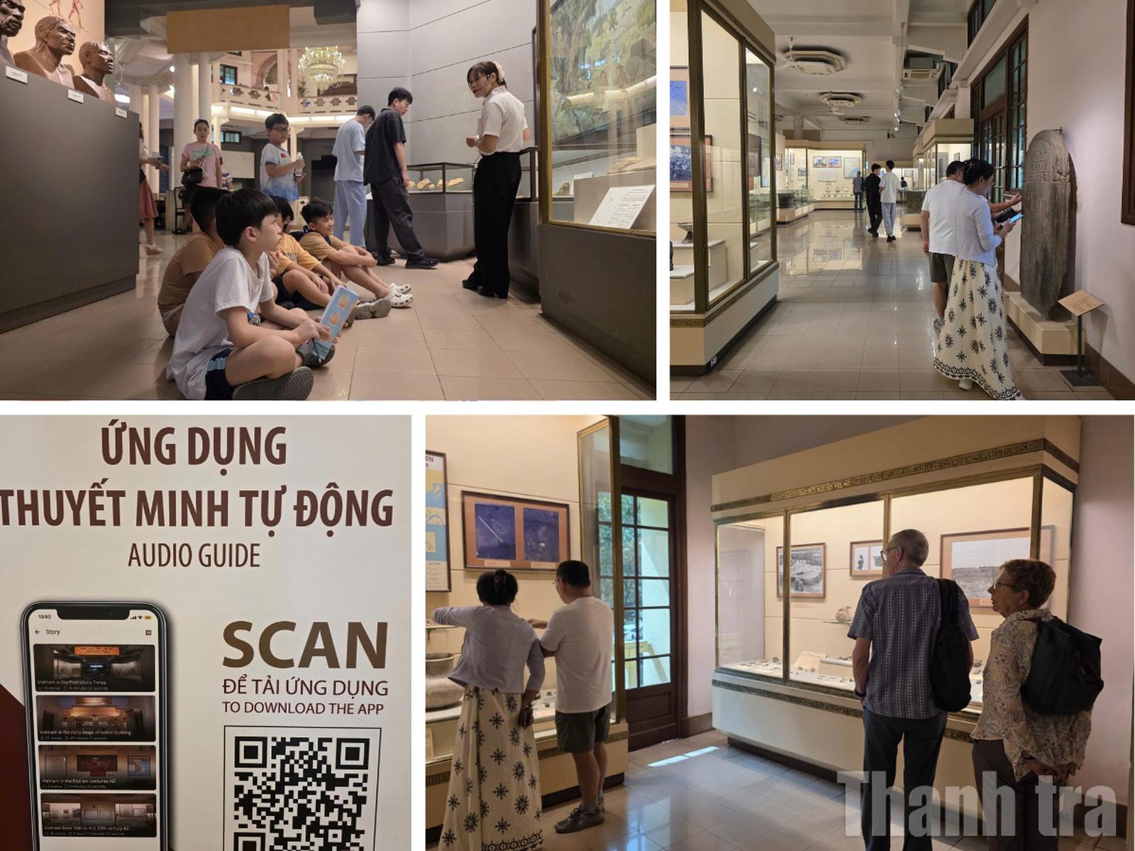 Từ trẻ nhỏ cho đến du khách nước ngoài đều dễ dàng tham quan nhờ ứng dụng thuyết minh tự động tại Bảo tàng Lịch sử Quốc gia. Ảnh: Bảo San