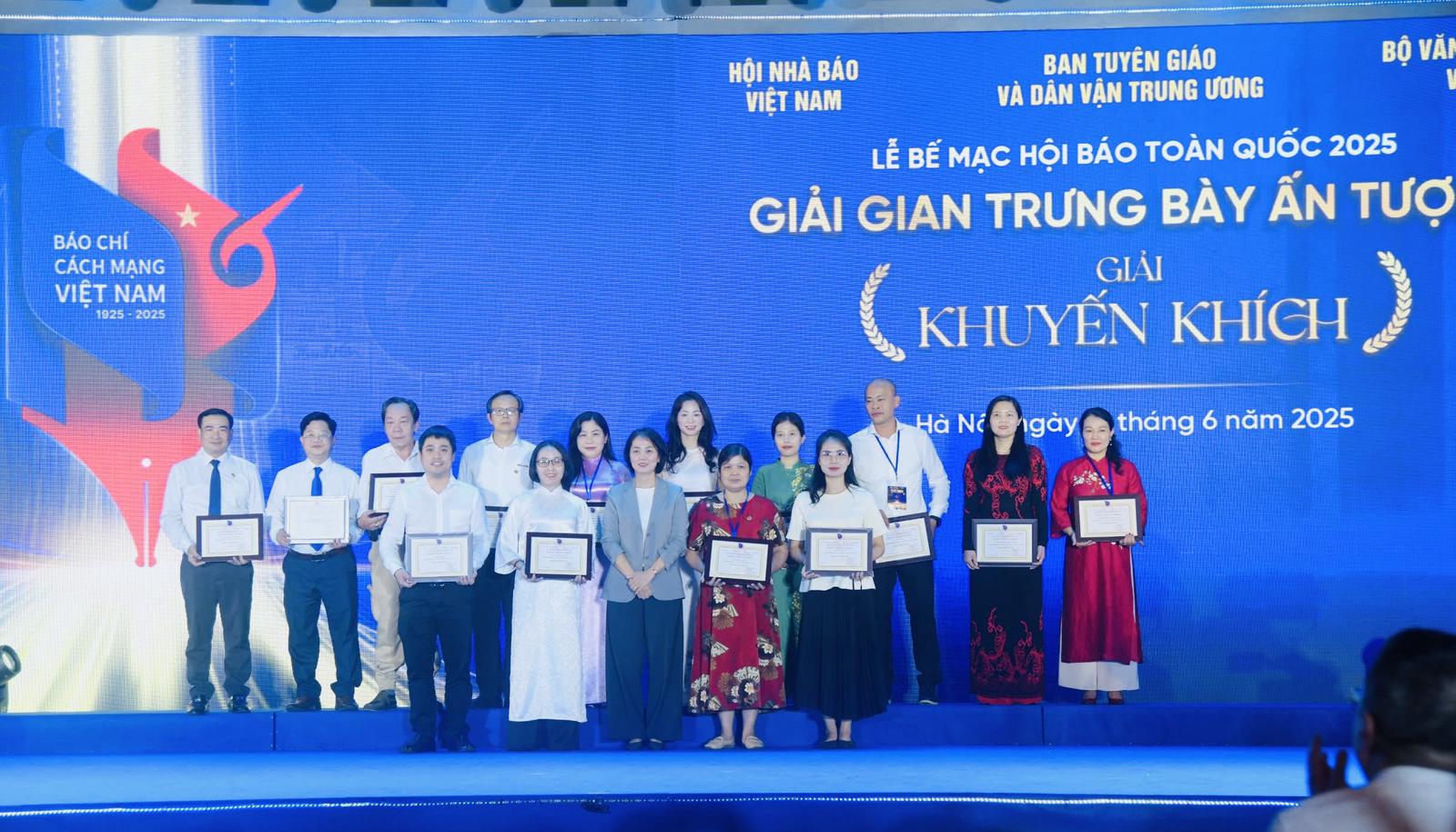 Ban Tổ chức trao giải Giải Khuyến khích Gian trưng bày ấn tượng, trong đó có Báo Thanh tra. Ảnh: Huy Trần