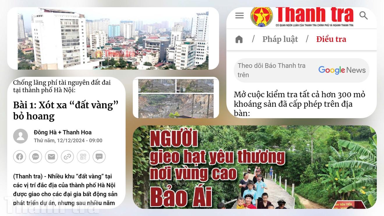 Trong đó, Báo Thanh tra đã xuất sắc giành 2 giải C, gồm: Loạt bài “Chống lãng phí tài nguyên đất đai tại thành phố Hà Nội” của nhóm phóng viên Hoàng Văn Hưng và Phạm Hoàng Long và loạt bài “Mở cuộc điều tra tất cả hơn 300 mỏ khoáng sản đã cấp phép trên địa bàn” do phóng viên Nguyễn Văn Thanh thực hiện. Đây là những tác phẩm được xây dựng trên quá trình tìm hiểu, nghiên cứu công phu, kỹ lưỡng bám sát thực tiễn, phản ánh những vấn đề nhức nhối liên quan đến quản lý, khai thác tài nguyên - lĩnh vực dễ phát sinh lợi ích nhóm, thất thoát tài sản công nếu thiếu kiểm tra, giám sát chặt chẽ.
