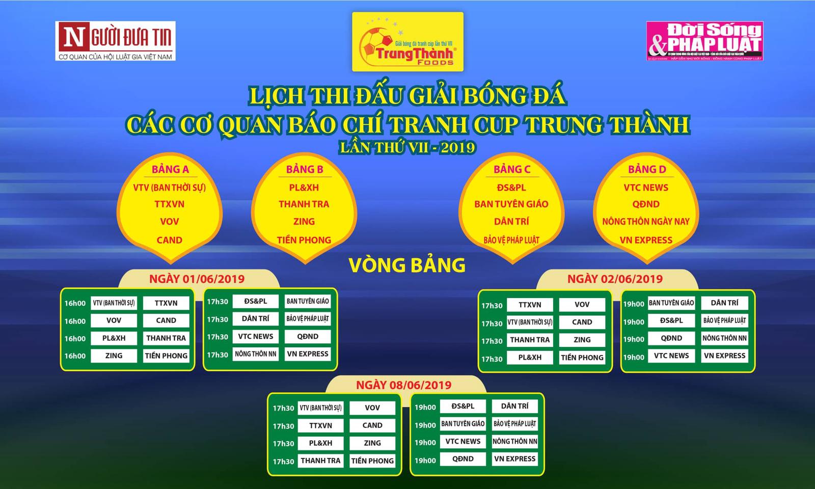 Các bảng đấu tại Giải Bóng đá các cơ quan thông tấn báo chí Tranh cúp Trung Thành lần thứ VII - 2019.