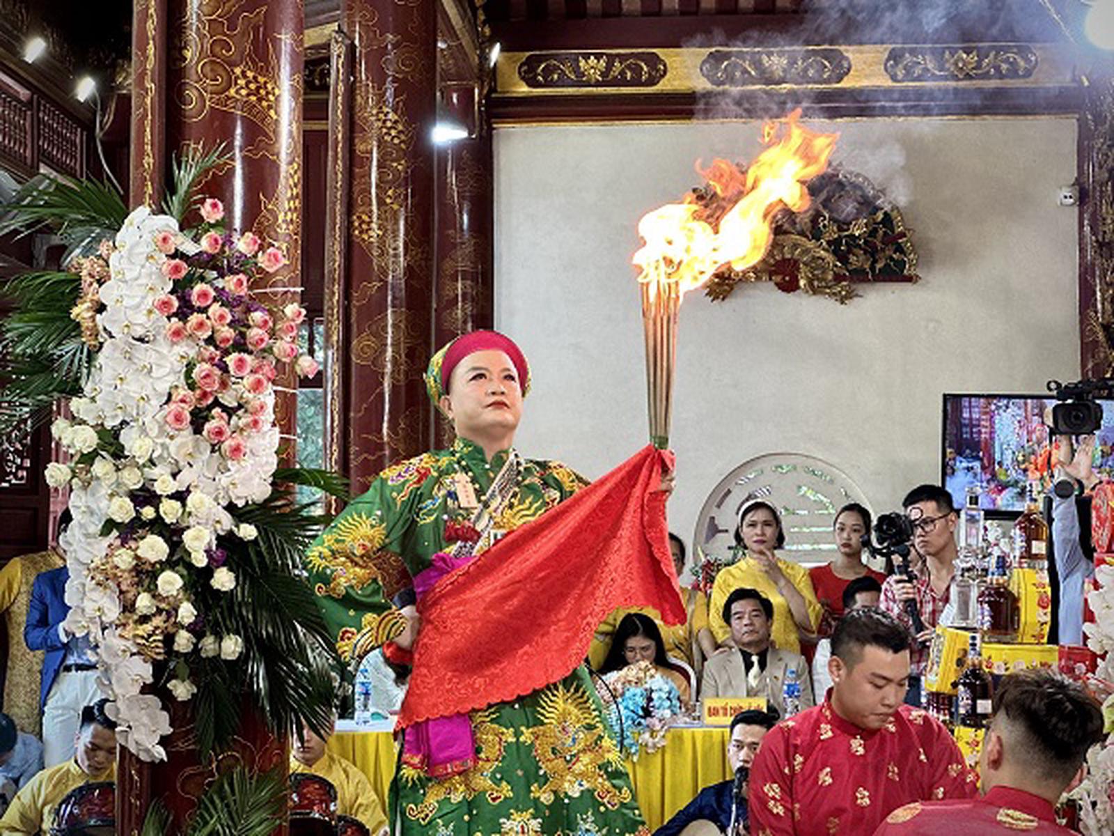 Nghệ nhân ưu tú Đặng Ngọc Anh, Phó Viện trưởng Viện nghiên cứu và Phát triển đạo Mẫu Việt Nam đã hầu khai mạc. Ảnh: Mỹ Vân