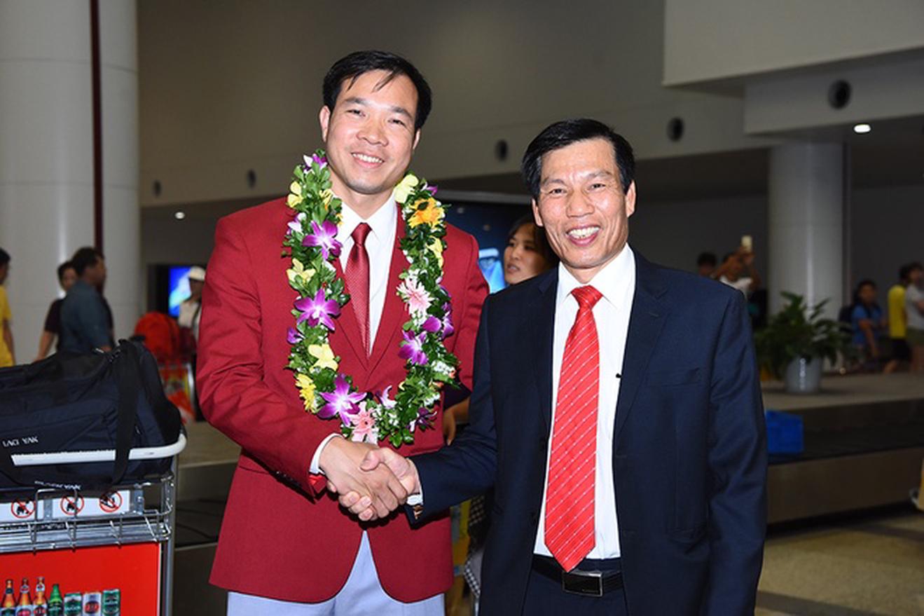 Chủ nhân của một HC vàng, một HC bạc Olympic 2016 được chào đón như người hùng khi đáp máy bay xuống Nội Bài tối 14/8.