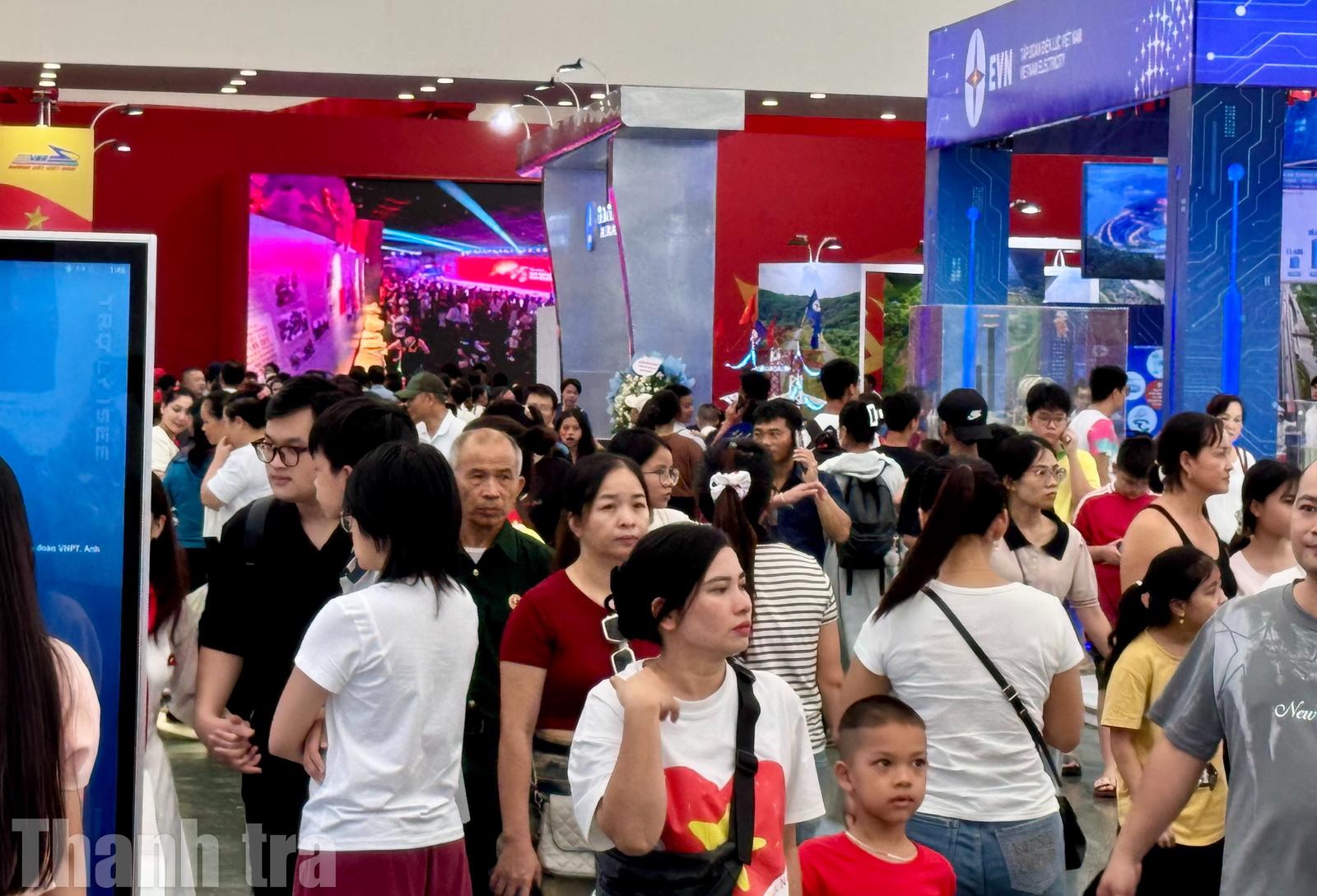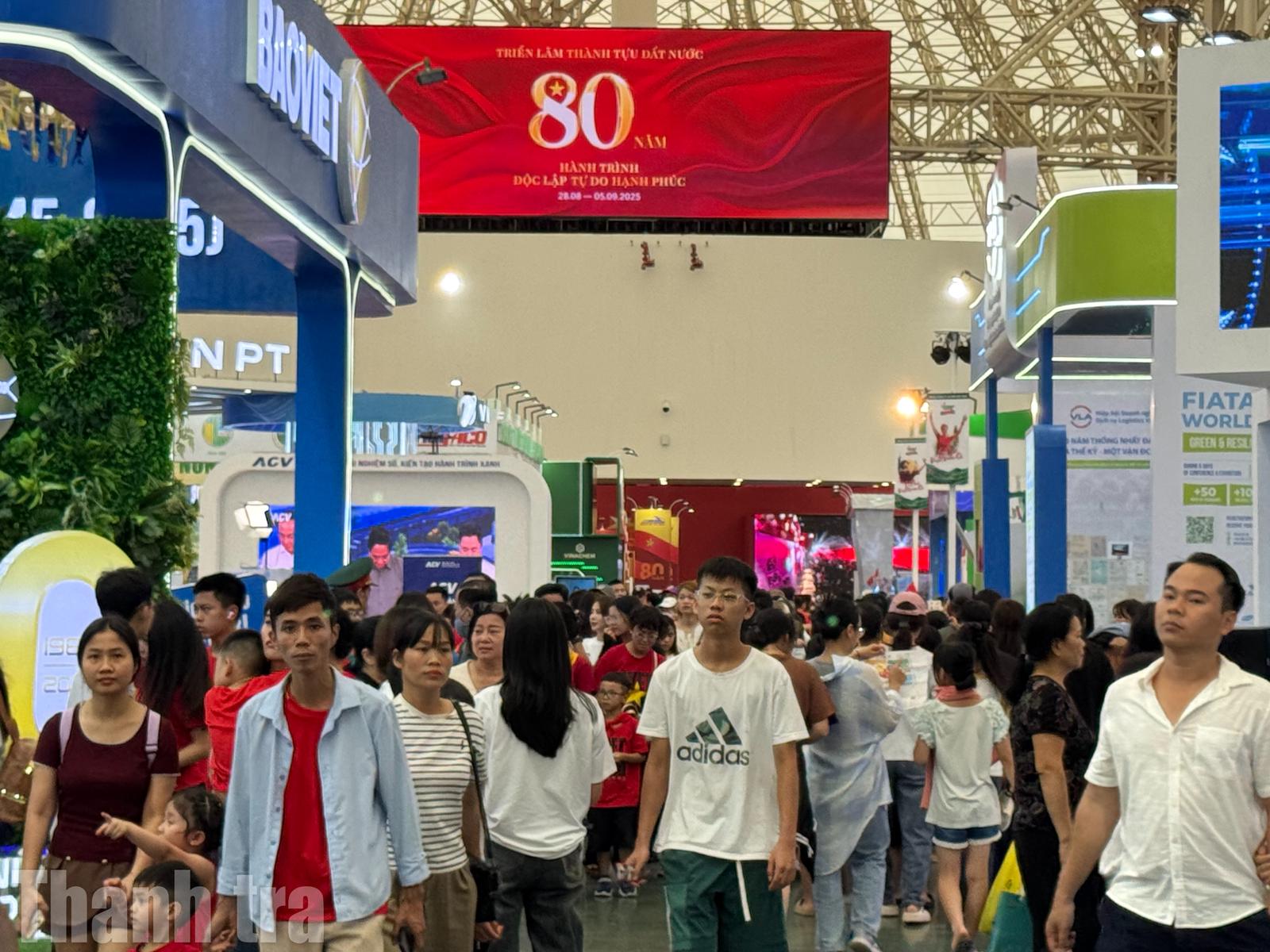 Thông tin với báo chí, đại diện Ban tổ chức cho biết, ngày thứ 3 diễn ra Triển lãm thành tựu đất nước với chủ đề "80 năm hành trình Độc lập - Tự do - Hạnh phúc", cũng là ngày đầu tiên trong kì nghỉ lễ mừng Quốc khánh 2/9, Triền lãm đã thu hút một lượng lớn người dân, cán bộ, chiến sĩ, học sinh, sinh viên và du khách trong và ngoài nước đến tham quan.