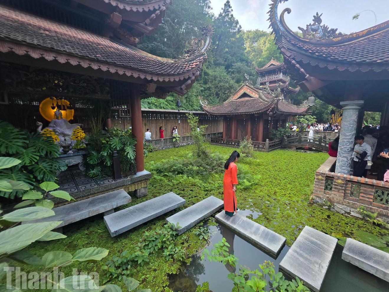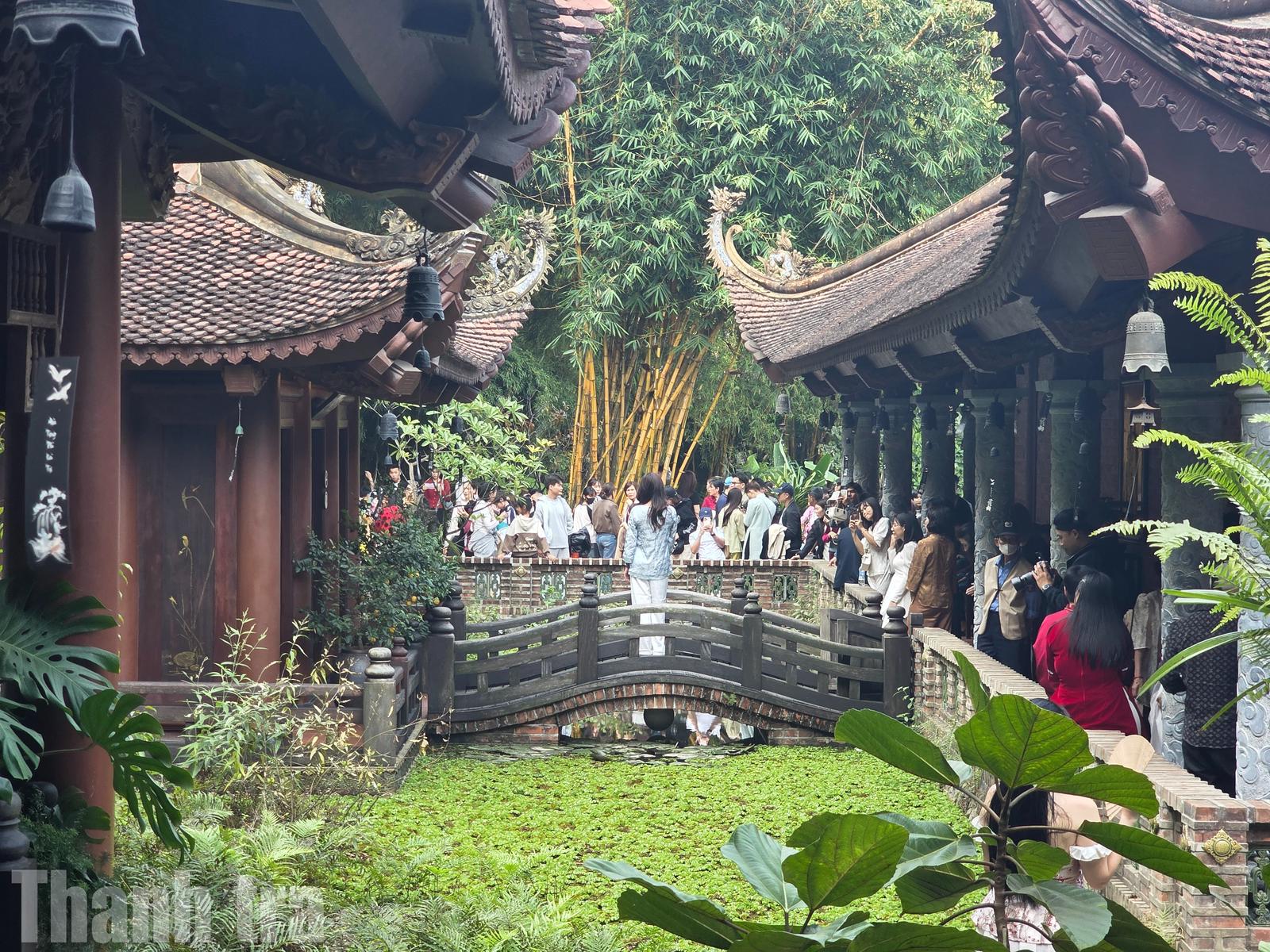 Anh Văn Công, một du khách đến từ Nghệ An chia sẻ: "Dù lượng khách năm nay rất đông, nhưng phong cách bài trí của chùa với tre, gỗ và những khu vườn thảo dược khiến người ta cảm thấy rất nhẹ lòng. Mỗi góc ở đây đều có thể cho ra những bức hình du xuân đậm chất văn hóa dân tộc".