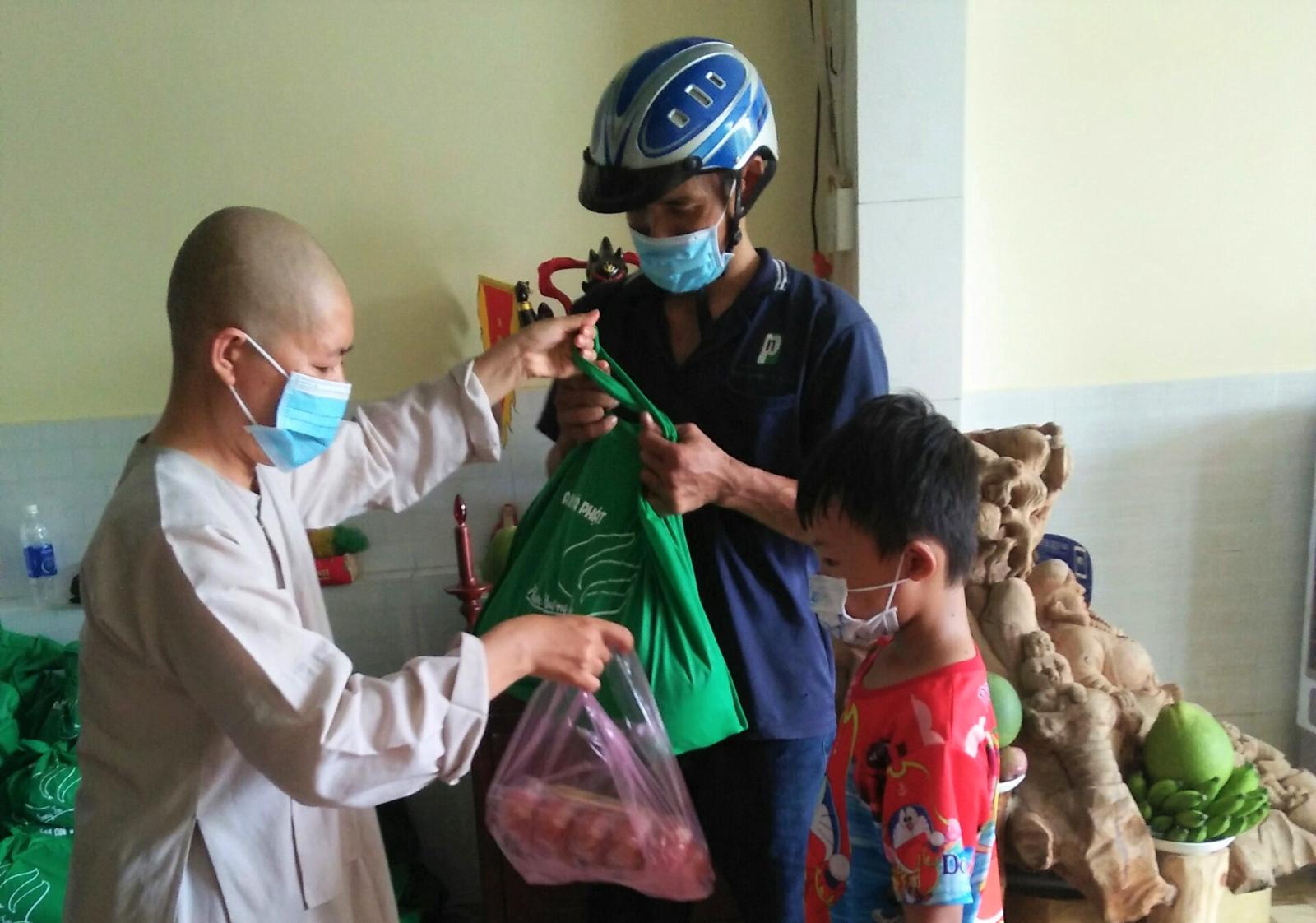 Nhiều hoàn cảnh khó khăn do ảnh hưởng của dịch bệnh được chùa Hương Nghiêm và các quý Phật tử trao quà giúp đỡ. Ảnh: CTV