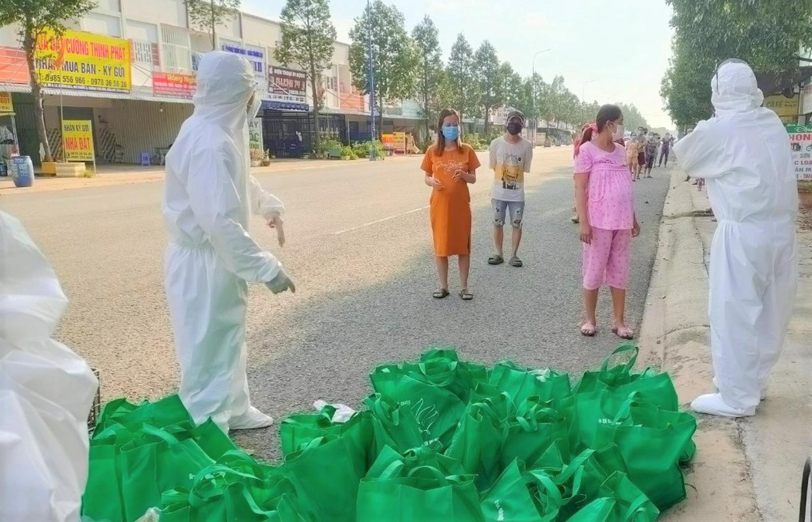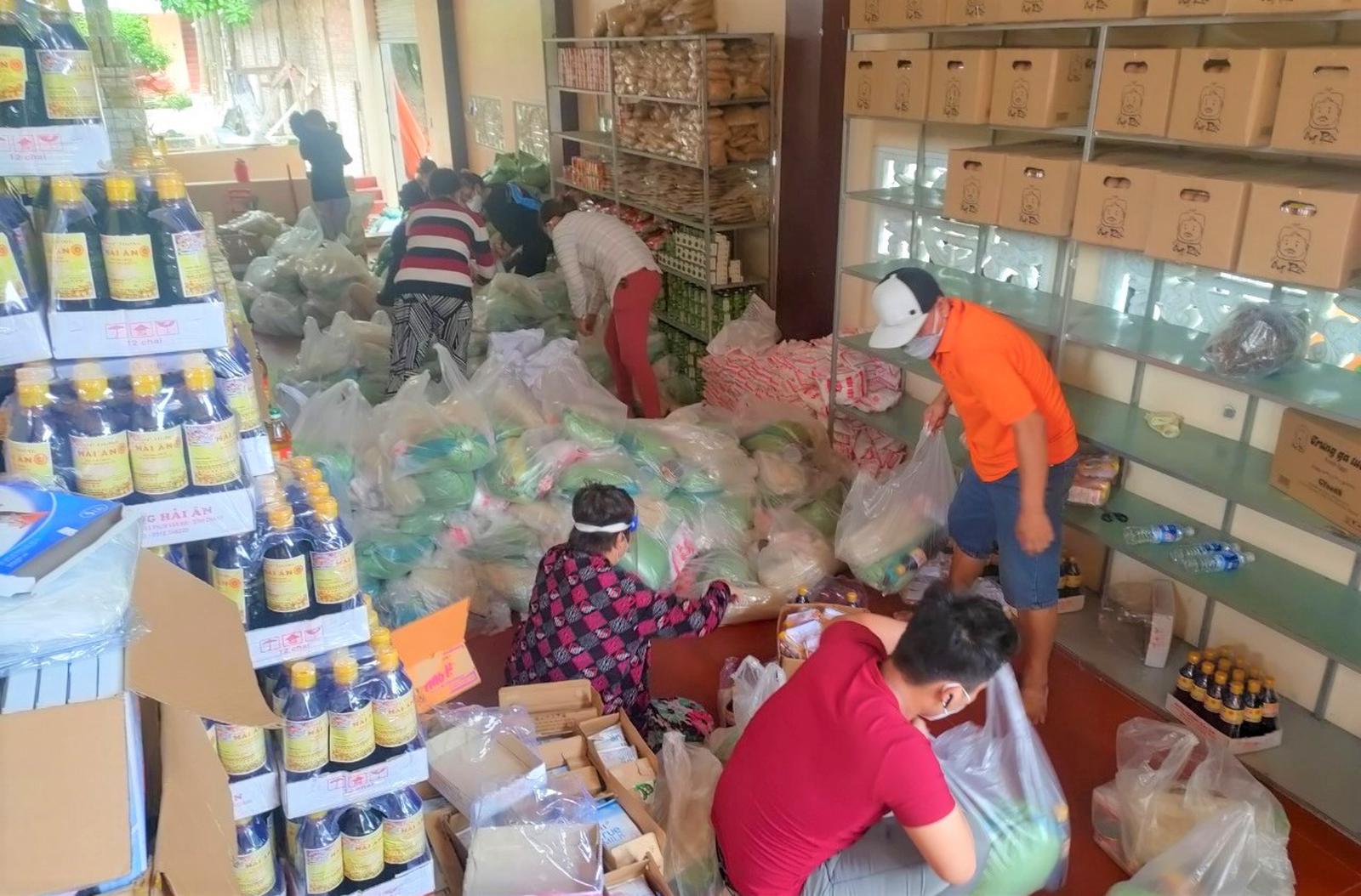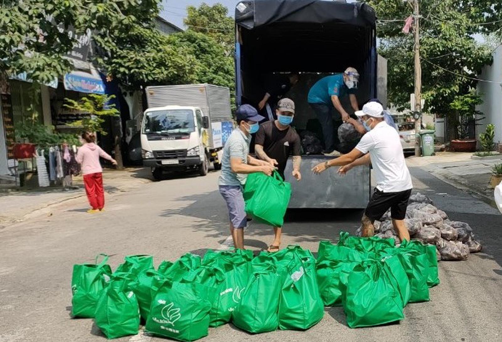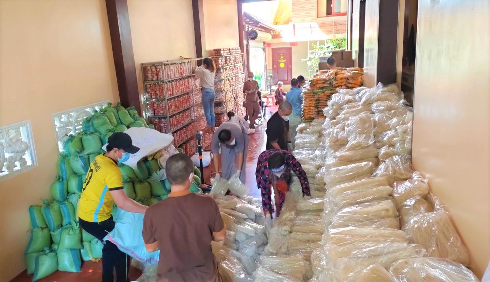 Mỗi ngày hàng nghìn suất lương thực, thực phẩm được chư tăng cùng quý Phật tử tại chùa gửi hỗ trợ đến công nhân khu nhà trọ bị phong toả, khu vực cách ly y tế... Ảnh: CTV