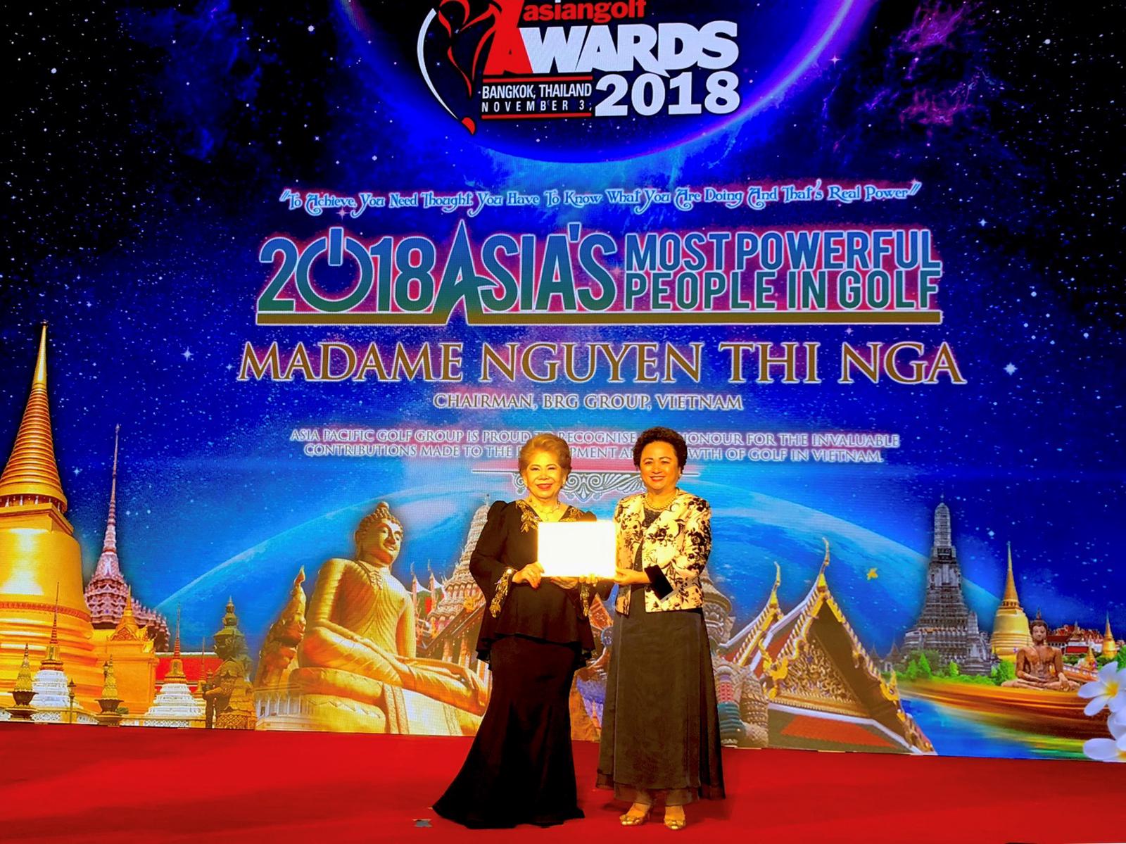 Cụ thể, Madame Nguyễn Thị Nga, Chủ tịch Tập đoàn BRG được vinh danh trong danh sách Asia Most Powerful People In Golf (Những người quyền lực trong ngành gôn khu vực châu Á), giải thưởng cao quý Order of Zenith (Đỉnh Vinh Quang) dành cho sân gôn xuất sắc nhất khu vực được trao cho sân gôn đẳng cấp quốc tế BRG Kings Island Golf Resort, và Top 3 Sân gôn Tốt nhất Việt Nam cho sân gôn BRG Ruby Tree Golf Resort.
