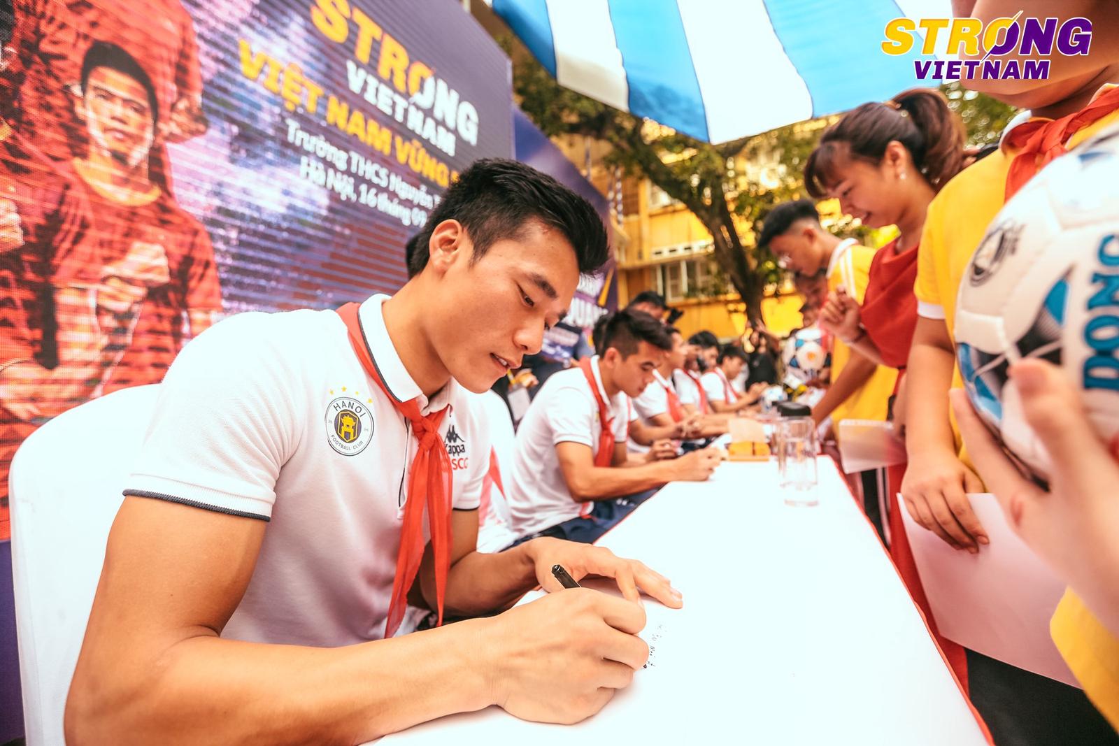 Không chỉ mang đến những câu chuyện ý nghĩa về ý chí, nghị lực, các cầu thủ CLB Bóng đá Hà Nội còn mang đến bầu không khí vui tươi, thân thiện khi giao lưu với các em học sinh Trường THCS Nguyễn Trường Tộ. Nhiều em lần đầu được gặp các thần tượng ngoài đời nên rất phấn khích, sung sướng.