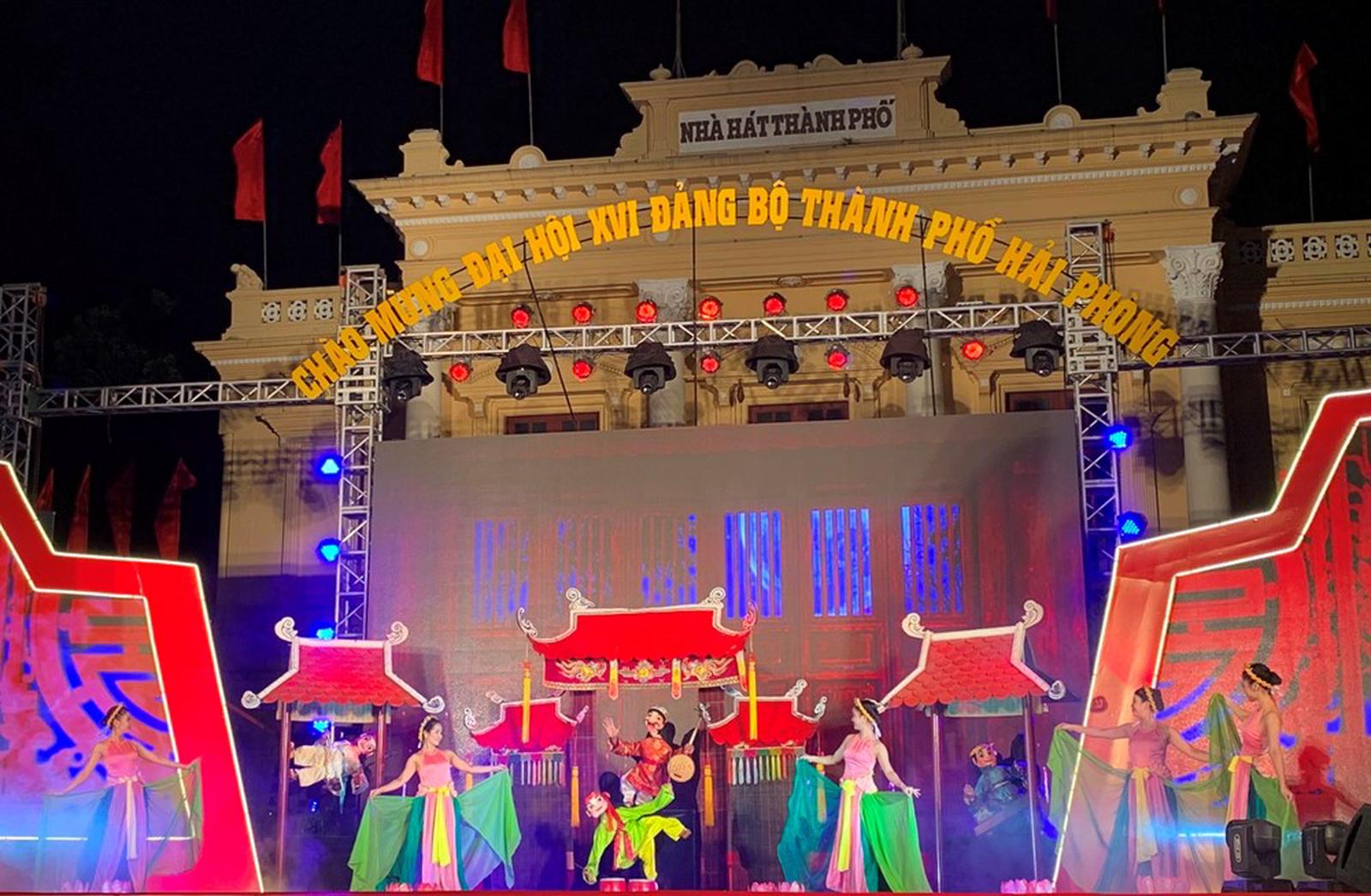 Hòa chung khí thế tưng bừng, phấn khởi trong những ngày diễn ra Đại hội Đảng bộ thành phố lần thứ XVI, Sở Văn hóa và Thể thao đã thực hiện chương trình nghệ thuật gồm 14 tác phẩm múa hát được chắt lọc từ phong trào nghệ thuật quần chúng của thành phố, dàn dựng công phu: Tiết mục “Tiếng kèn trung dũng quyết thắng” do Trung tâm Văn hóa và Thể thao quận Hải An thể hiện; “Niềm tin ngày mới” do Trung tâm Văn hóa và Thể thao quận Ngô Quyền thể hiện; “Bài ca Hồ Chí Minh” do Trung tâm Văn hóa và Thể thao huyện Vĩnh Bảo thể hiện,…