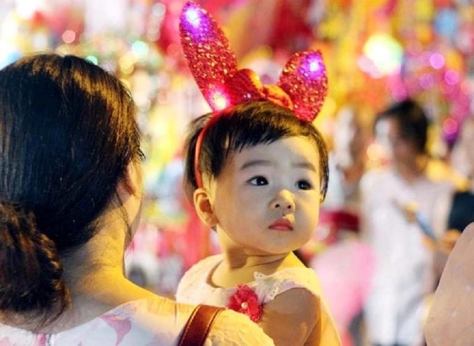 Các em nhỏ háo hức được bố mẹ cho đi ngắm phố Hàng Mã rực rỡ về đêm mỗi khi rằm Trung thu lại về (Ảnh: Thành Công).