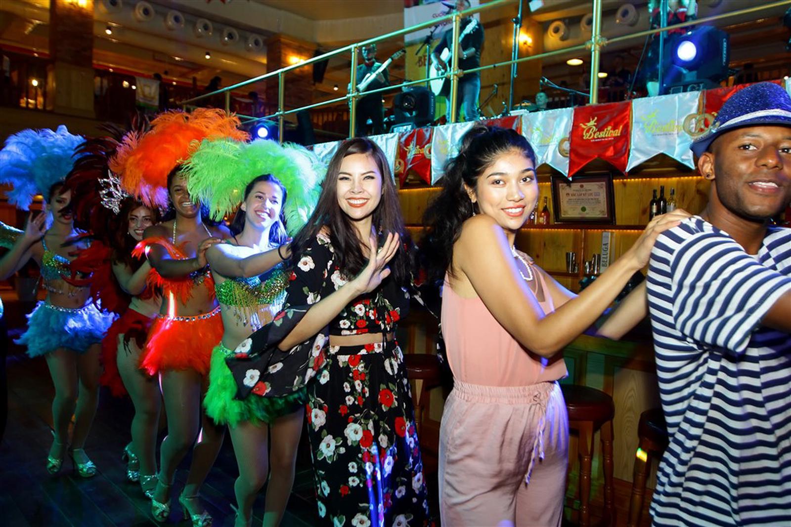 Không chỉ thỏa thích chụp hình sống ảo, các hoa hậu còn hòa nhịp vào yến tiệc hoành tráng, xa hoa của Vua Mặt trời trong Carnival “Yến tiệc vua Mặt trời” vẫn đang tưng bừng diễn ra mỗi ngày ở Bà Nà Hills.