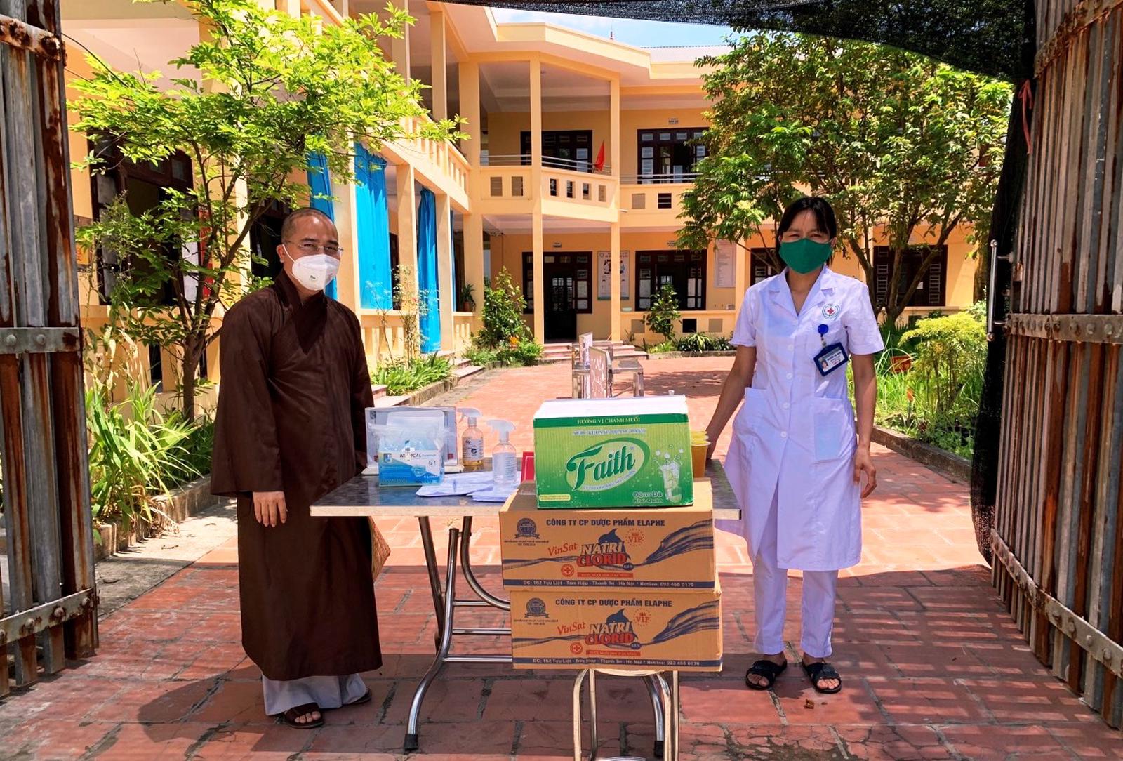 Chùa Diên Quang, xã Việt Hùng (Quế Võ) và các Phật tử tặng 20 thùng khẩu trang cho Ủy ban MTTQ xã Việt Hùng và các chốt kiểm soát dịch bệnh trên địa bàn. Chùa Long Hoa, xã Văn Môn (Yên Phong) và các Phật tử tổ chức nấu cơm cung cấp cho lực lượng làm nhiệm vụ tại 9 chốt phòng, chống dịch trên địa bàn xã Văn Môn, ủng hộ mỗi chốt 1 chiếc tủ lạnh và các nhu yếu phẩm khác như khẩu trang, nước sát khuẩn tay, máy đo thân nhiệt.