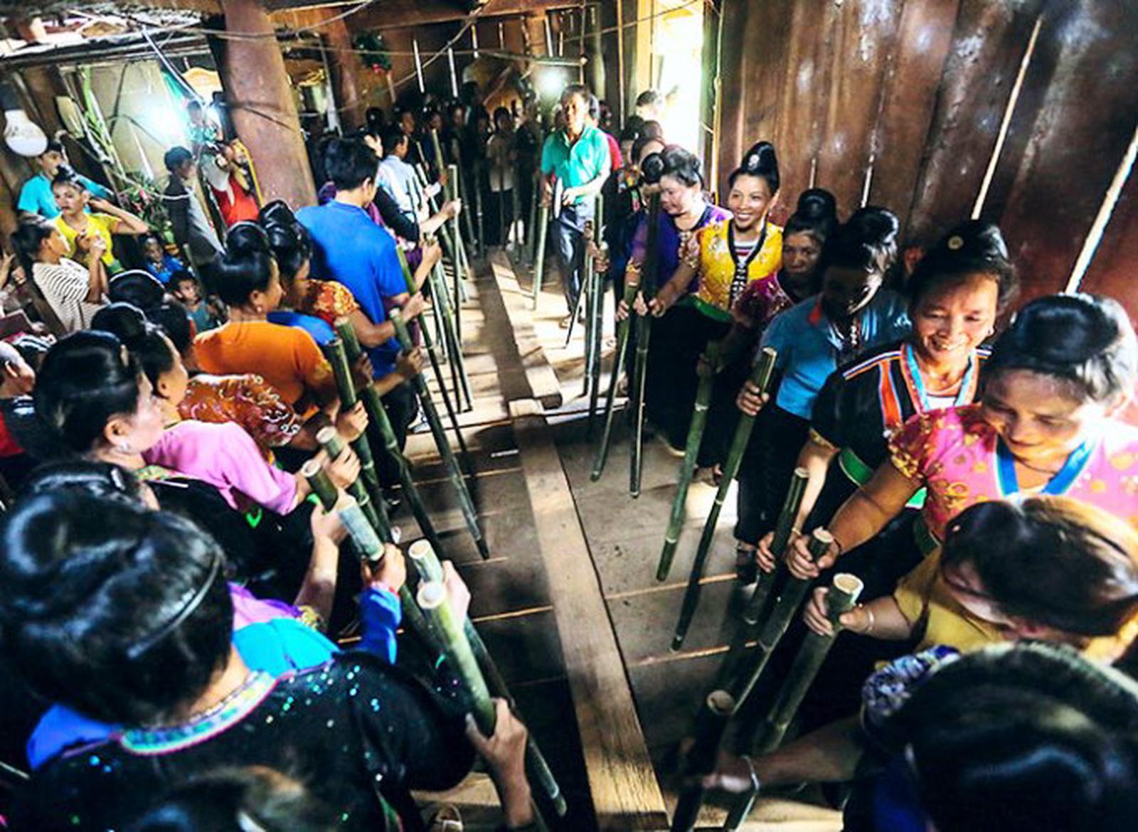 Khi tiếng cồng vang lên ở nhà trưởng họ Lò Khun, báo hiệu lễ hội Pang Phoóng bắt đầu